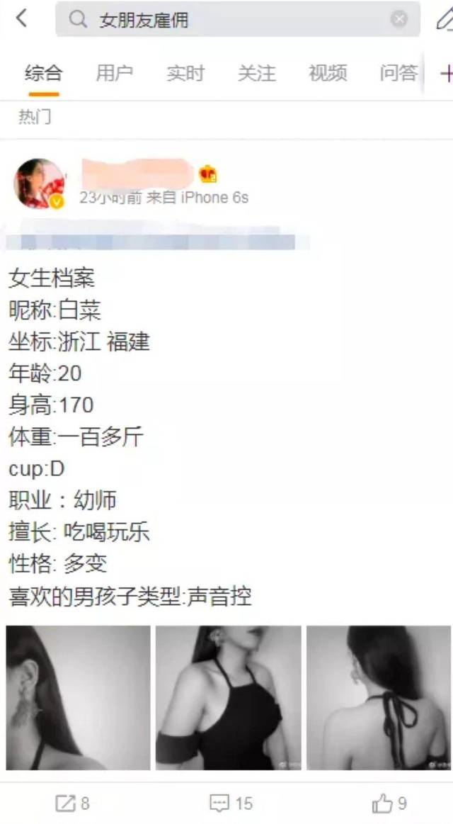 大家好,我是记者张宝飞。 我是一名民间职业卧底记者,之前写过很多关于校园贷,套路贷,甚至luo贷的文章,而今天,我想揭露一个更为可怕的事情——“ 女朋友雇佣”。 来源:微博APP截图 大家有没有发现这样一个现象,当代大学生里面有这么一群女孩子,她们的家庭状况并不好,甚至还有些贫困。可是她们每天打扮得花枝招展,生活就是该吃吃该喝喝,用高档手机、穿潮牌衣服,搞各种奢侈聚会,花天酒地自然是常有的事。 如果你不了解她们的家庭情况的话,你会以为这女生家里应该挺有钱。但实际上,这些钱都是别人给的。 之前, 大家都只知道当年的wang贷有多猛,利息有多高,当年那些无知的学生们哪会想这么多,超前消费,以贷养贷,到最后这颗雪球越滚越大,滚到最后都还不起了。有些可能只借了几千块,到最后滚到几万,十几万的都有,只能把父母一辈子的血汗钱搭进去,最终害人害己。也有不敢向家人开口的, 女同学无奈可能会选择waiwei等不正当,甚至有人因此丢掉性命。 慢慢的,这种罪恶就变成了luo贷——因为还不起钱,直接把自己的luo照放在网上,然后标一个价格,合适就把自己的青春给mai了。 去luo贷的学生,都是为了满足自己的虚荣心而已,但仅仅只是满足了虚荣心而已。这点虚荣心的代价,有可能会让父母搭上一辈子的血汗钱,有可能会消耗自己毕业后的大好青春,甚至是自己的xing命。 而现在,在网上流行起一种更为直接的要$方式, 女孩子们直接通过——“女朋友雇佣”获取 $。这社会太现实了。 而我,张宝飞,作为一名民间职业卧底记者, 今天必须勇敢的站出来。 像这样的se情ca边qiu平台,陌生男女社交App层出不穷,封了一个又一个!但是仍有那些逍遥fa外,不断地侵害着社会的毒瘤。甚至换了个名字或形式又原地复活。而这次爆料的这个软件,叫「趣味」app。 我简直无语了...难道国家相关部门不管这方面的吗???真的就这么无法无天吗??? 经查证得知安卓像华为、小米、 oppo等应用商店该应用已经被全部下架了,由此可见,国内管控还是比较严格的,但是苹果商店还是能搜到...难道苹果中国就管不了吗???更加让人难以置信的是,就不这么靠谱的一个平台,居然在AppStore的免费社交榜冲进了 第二名?????? 来源:AppStore排行榜截图 所以,今天必须来好好扒一扒这个APP的底裤,扒一扒“女朋友雇佣”到底一种怎么样子的特S服务? 这样的网站面对是这样一群人: 他们认为谈恋爱很复杂,需要大量的时间、精力、耐心、理解和一次性存在的隐私,但在这个时代的某些时刻,你还是需要有一个人出现。 于是,这时候,你就可以选择雇佣一个女朋友来解决你的问题,你不但可以租一个年轻、漂亮、又有吸引力的女孩,而且她还没有真正女朋友的各种小毛病和缺点,你既可以享受女朋友该有的好处而不存在必要的麻烦,也可以随时解雇,得了乐趣,又拥有潇洒。 当看到这样的解释时,我简直是惊讶了。不得不承认,现代人的某些交友方式变得越来越奇特,甚至越走越偏。 来源:趣味APP截图 这是什么奇葩此操作,长这么漂亮的,都出来做女友租赁?还明ma标jia。在APP的页面上,可清楚的看到对方照片、基本信息,还有交友目标,不过jia格我是在和她们聊天时得知的。 甚至还有在广场的活动页面直接定位相yue的,目标、条件、时间、地点清清楚楚。 来源:趣味APP截图 不想付出谈恋爱的任何时间成本,却更愿意来一场雇佣关系的快餐式恋爱。单身群体越来越多,前几个月,中国单身成年人口超2亿这个话题还登上了热搜。 那么问题就来了,为什么这样一款打着陌生交友的app,能够在短时间内冲到社交榜前三的位置,而且还没有被商城下架?? 为了一探究竟,我找到了关于相关新闻报道。 来源:互信新闻网采访视频截图 据采访的这位男士透露称,里面的女生大多都是有目的xing的yue会。 记者问:目前都是集中在线下的yue会吗? 答:是的,因为它可以很快的找出附近的人,基本上约一下,聊几句,女生就愿意出来和你玩了,下线的事情我们就管不了。 下图是另一个采访节目的截图: 来源:腾讯新闻采访视频截图 另外,节目里还贴出来了一段比较奇葩的,线下约会的聊天记录。 “你好啊,美女,在干嘛? “你好啊帅哥。我在想你啊。” “美女啊,平常晚上你都干嘛啊?听说最近好电影很多呢,要不要一起去看,看完之后再……?” “好啊,我刚跟男朋友在吃饭呢。” “你有男朋友我不介意啊,不就一个晚上嘛,别想那么多!你不说谁会知道?” “知道了哦小哥哥” 确实,当我填完资料进去主页不到五分钟就有好几个漂亮小姐姐私信我,而且非常直接的那种,明ma要价。 来源:趣味APPli截图 还有几个更露骨的聊天截图我就不放出来了,审核不能通过。从她们的介绍和很直接的私信中可以看出,通过这个app撩到的妹子,根本就是单纯的充满了金· $·jiao·易。 就算恋爱着的人,也很容易疲倦, 女生宁愿出去约素pao,也不愿找男朋友抱抱。其实,人的内心越是孤独,就越是渴望陪伴。 只不过,无论什么时候时候,无论什么原因,在网络社交关系里都应当保持分寸与理智。在这个世界上,缓解孤独的方式有很多,如果自己不与孤独和平共处,那么你这一生都可能注定孤独终老。 一次X的jiao易,一次X的交友,短暂的陪伴和情yu,满足得了片刻的寂寞,但终究拯救不了你一生的孤独感。 学着和自己相处,相信我,会比那些虚无缥缈的东西,让你更快远离孤