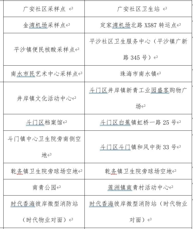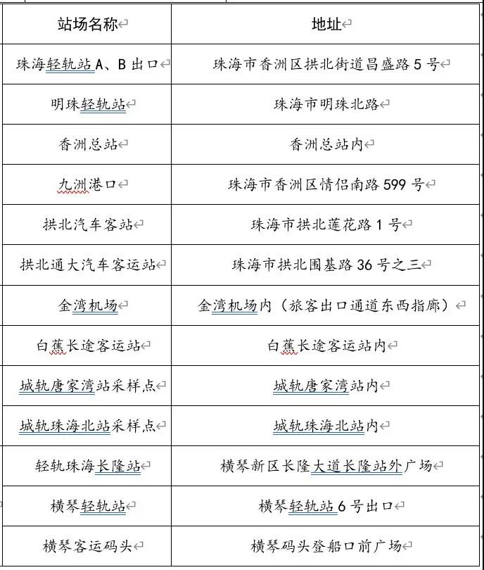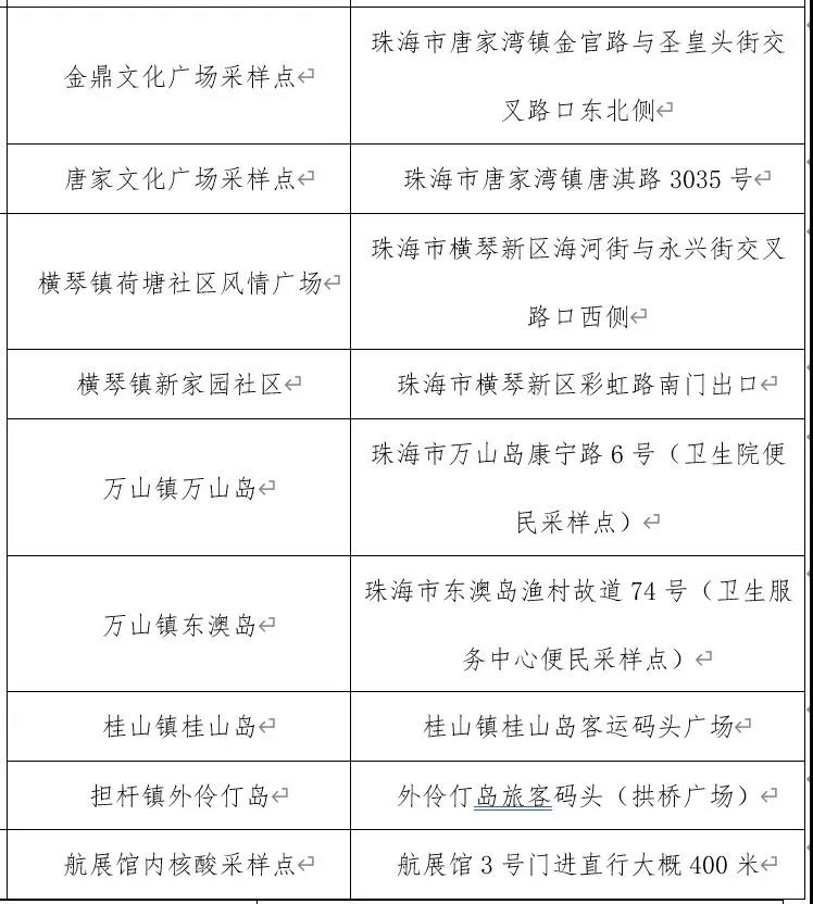 计划观看航展的人注意啦, 核酸采样点增加了! 就在航展馆内! 9月28日至10月3日,第十三届中国航展将在珠海国际航展中心举行。根据《第十三届中国航展新冠肺炎疫情防控工作方案》要求,参加航展开幕式的人员需持9月28日上午9时前48小时内核酸检测阴性证明,其他时间入场则需持72小时核酸检测阴性证明。 9月25日,特报君从珠海市卫生健康局获悉,为了给观展民众提供最大程度方便的服务,航展期间,我市卫生健康部门除了在全市各区域设置了定点便民核酸采样检测,还在“两站一场一码头一港口”新设乘客落地核酸采样点,为来(返)珠人员、参展人员提供“愿检尽检”核酸检测服务。 航展便民采样点 设置如下: “两站两场一港口” 落地核酸采样点 设置如下: