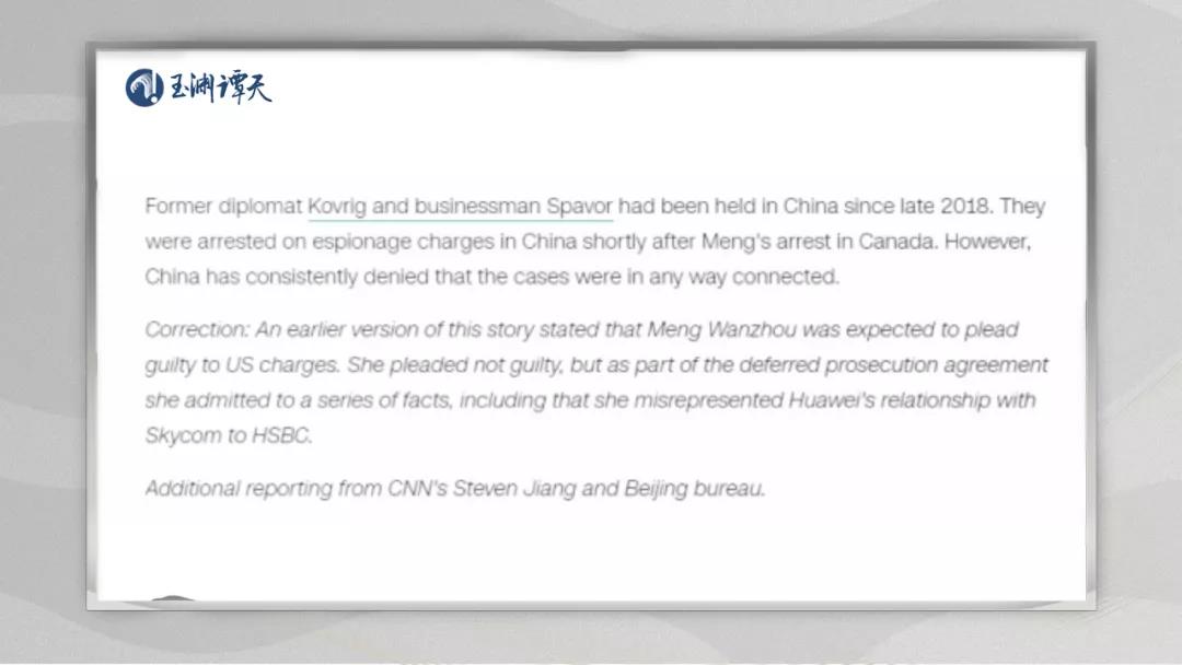 3年后,孟晚舟平安归来。同一天,全国工商联发布2021年中国民营企业500强名单,华为连续6年第一。几乎在同一时间,把华为列在实体清单上的美国商务部释放消息称,寻求改善与中国的商贸关系,有意率团赴华寻求商机。在历时三年的艰巨斗争之中,我们始终站在历史正确的一边。中国依然是那个中国,但美国已经用实际行动证明,遏华,不奏效了。谭主联合专业机构中译语通,用大数据和知识谱图技术分析了2018年1月至2021年9月涉及“meng wanzhou”一词的报道,共计208746条。结果显示,在孟晚舟归国之前,全球媒体对这一事件积极的情感倾向占比仅有5%。换句话说,全球舆论并不看好孟晚舟案的结果。就在1个月前,加拿大法院审理孟晚舟引渡案进入最后阶段。外媒在了解加拿大有关案件结果的过往数据后,作出了预判,孟晚舟被撤销引渡的可能性只有1%。2008-2018年间,美国近800份的引渡申请中,只有8例引渡最终被加拿大驳回或解除。如今的结果,实属难得。 按照西方舆论的“剧本”,如果孟晚舟获释,肯定有前提。毕竟在半年前,美国媒体就释放过类似的消息,称:美国司法部正在跟孟晚舟的律师谈判,只要孟晚舟认罪,美国司法部可以延迟起诉或者不起诉。习惯了欲加之罪,以至于最开始,加拿大媒体和美国媒体对孟晚舟归国的报道,都默认孟晚舟认罪并且提交了巨额罚款。后来证明,这些报道都打脸了,西方媒体也只能用“更正”来掩盖尴尬。CNN的更正:之前的报道中提到,孟晚舟承认了美国指控的罪名。实际上她并没有认罪。一些西方媒体这么想当然,也是习惯了美国的霸权行径,从“实力”的地位与别国互动。美国司法部与孟晚舟达成的暂缓起诉协议,是庭外和解的一种方式,美国司法部同意辩方在签署了暂缓起诉协议之后,能有条件地避免被起诉或被采取强制措施。“认罪交换自由”的游戏,在中国公民孟晚舟这里,没有重演。美国,为什么变了?要知道,对美国这个国家来说,凡是可以不讲理的地方就一定不讲理,要是讲一点理的话,那就是被逼得不得已了。按照北京大学国际关系学院王勇教授的分析,孟晚舟获释回国,归功于中国强大的外交实力。谭主注意到几个细节。就在孟晚舟获释前几天,中方代表还在联合国人权理事会第48届会议上敦促加拿大立即纠正错误,解除对孟晚舟的任意拘押。而早在2018年,孟晚舟被任意拘押后不久,中国外交部就紧急召见了美国驻华大使和加拿大驻华大使,两次召见,中方都留下了同一个词:性质极其恶劣。这次从温哥华启程回国前,中国驻加使馆相关人员专门到机场为孟晚舟送行,中国驻加拿大大使同行回国。 图为孟晚舟在位于加拿大温哥华的不列颠哥伦比亚省高等法院门前向媒体发表声明。中新社记者 余瑞冬 摄孟晚舟能回国,不仅仅是中国外交人员努力的结果,更是因为站在他们背后的中国和中国人民。今年7月,美国常务副国务卿舍曼访华,中国更是开出两份清单,释放孟晚舟,成为中国给美国当面列出的需要解决的26项问题之一,这在中美交往史上还是首次,背后是中国实力和凝聚力不断提升的结果。归根到底,靠所谓“实力”打压制裁的路数在今天的中国行不通,美国只能回到讲理的轨道上。美国司法部公告的标题中,用到了“Misleading”一词,声称孟晚舟“承认”了她“误导”全球金融机构。长期关注孟晚舟案的沈倩律师仔细阅读了美国司法部的声明发现,孟晚舟承认的,是之前在法庭中陈述过的事实,里边没有任何认罪的字样。美国,想给自己个台阶下。1028天,直到最后一刻,美国仍然想给孟晚舟扣上一顶“有罪”的帽子,这样的伎俩,早在3年前,美国发起贸易战之时就开始谋划。2018年6月,时任美国商务部长威尔伯·罗斯在接受采访时表示,没有发现华为任何违规的地方。但6个月后,美国秘密要求加拿大逮捕孟晚舟。非法扣押孟晚舟一个多月后,美国司法部宣布起诉华为及孟晚舟,主要罪名包括银行及电信欺诈、妨碍司法,以及窃取商业机密。在宣布起诉孟晚舟的发布会上,威尔伯·罗斯,赫然在列。如果有利于国家安全利益或能推动中美达成贸易协议,他愿意干预司法部针对孟晚舟的案件。很显然,孟晚舟案,本质上是政治操弄,而不是什么司法案件。在不断提起引渡的同时,美国政府行为背后的逻辑,也愈发清晰:2019年5月,特朗普政府将华为列入实体清单,限制美国企业供货给华为。此后的2020年5月、2020年8月、2021年4月,美国先后三次升级对华为的制裁。然而事与愿违,2020年,华为总营收增长11.2%,利润增长10.4%——美国靠制裁打压中国企业的手段,并未得逞。就在孟晚舟回国的同一天,美国商务部长吉娜·雷蒙多在接受《华尔街日报》采访时表示,她将寻求改善美国与中国的商贸关系。从制裁到主动接触,看起来,美国的做法,在发生变化。事实上,这正是拜登政府想要做的,构建一个更负责任的美国形象。相比于前任政府动辄退群、频频发动制裁的行径,合作,成为美国现任政府的“口头禅”。就在孟晚舟回国的几乎同一时间,拜登在白宫主持首次“四方安全对话”机制领导人“面对面峰会”,主题,刚好是“科研合作与交流”。《华盛顿邮报》的报道中就提到,尽管四国领导人在会议的公开讲话中并没有提及中国,但中国,还是本次会议的背景音。美国,一直想要扮演规则的制定者。之前是赤裸裸地本色出演,现在又想披上一层伪装。但其本质上却