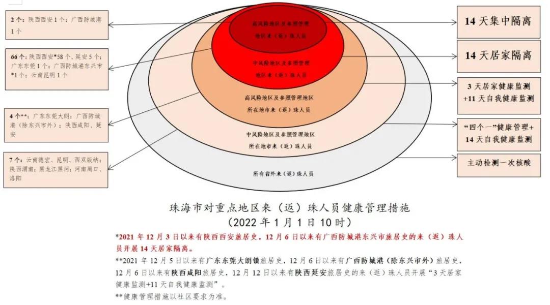 12月31日,河南省洛阳市新安县报告4例新冠肺炎无症状感染者(一对夫妻及父母),妻子及父母均无外出旅居史,丈夫12月18日从四川成都乘坐大巴回到洛阳,12月19日01:00左右到达灵宝服务区休息4小时。此前河南周口沈丘报告4例个案(从西安自驾回沈丘)于18日晚曾到灵宝服务区。 目前,新安县正按照疫情防控相关应急方案有序开展疫情防控工作。 珠海疾控提醒: 1. 以下来(返)珠人员须立即主动向社区、单位或酒店报备,并按要求开展健康管理措施。 12月20日(含)以来有陕西省渭南市旅居史人员; 12月19日(含)以来有河南省洛阳市旅居史人员; 12月18日(含)以来有河南省周口市旅居史人员; 12月14日(含)以来有云南省昆明市旅居史人员; 12月13日(含)以来有云南省西双版纳州旅居史人员; 12月12日(含)以来有陕西省延安市旅居史人员; 12月12日(含)以来有黑龙江省黑河市旅居史人员; 12月6日(含)以来有广西自治区防城港市旅居史人员; 12月6日(含)以来有陕西省咸阳市旅居史人员; 12月5日(含)以来有东莞市大朗镇旅居史人员; 12月3日(含)以来有陕西省西安市旅居史人员; 10月15日(含)以来有云南省德宏州旅居史人员。 2. 请有外出旅居史的来(返)珠人员留意自己的健康码,如健康码变成红码或黄码,请立即主动向所在社区、单位、酒店报备,并配合做好核酸检测、医学观察或健康监测等疫情防控措施;如有收到外省市电话或短信提示自己是密切接触者或次级密切接触者的市民请立即联系属地疾病预防控制中心,同时向所在单位和社区居委会报备。 3.鉴于以下地区出现本土疫情发生,建议来(返)珠人员抵珠后48小时内开展一次核酸检测外,还要进行14天自我健康监测。 12月25日(含)以来有贵州省铜仁市旅居史人员 12月19日(含)以来有山西省运城市稷山县旅居史人员; 4.每个人是自己健康的第一责任人,请积极配合各地健康排查、健康码查验等疫情防控措施。如果刻意隐瞒行程、拒绝接受核酸检测或不配合防控,依法追究责任。 5.另外,鉴于当前的疫情形势,外省旅游、出差返珠后,建议主动做一次核酸检测并自我观察14天,做好健康监测。 如何进行健康申报: 从国内中高风险地区来(返)珠人员、国内中高风险地区所在地市来(返)珠人员、入境人员、入境后解除集中隔离返回社区人员在进入珠海2小时内完成个人健康申报。申报的流程如下: 最后再次提醒广大市民: 请尽量避免前往中高风险地区或有病例报告的区域,日常要坚持做好勤洗手、戴口罩、勤通风、一米线这“防疫四件套”。 每天进行自我健康监测,如有出现发热、干咳、乏力、咽痛、嗅(味)觉减退、腹泻等不适症状时,尽早到附近医院发热门诊就诊,并告知医生旅居史,不要自行用药;就医途中全程佩戴口罩,避免乘坐公共交通工具。 在没有接种禁忌症的情况下,符合条件的市民尽快接种新冠病毒疫苗。(已接种两剂次,且满6个月及以上者,赶紧接种第三针——加强针)。 每个人都是自己健康的第一责任人 疫情防控需你我共同努力 让我们积极配合疫情防控措施 早日和新冠疫情说再见! 也请动手转发出去,让更多人知道~ 来源:珠海疾控、全珠海,如有侵权请联系删除,本文仅代表作者观点,不代表广谈大湾网的观点立场。 |