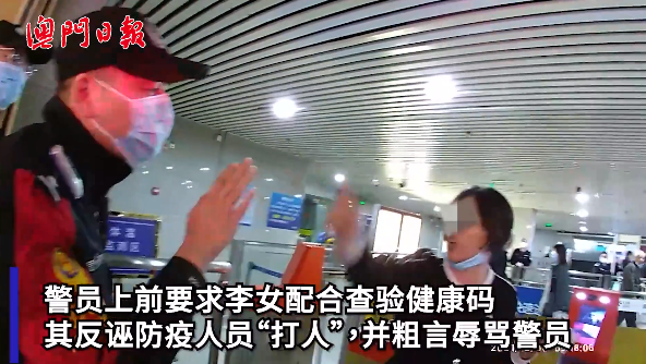 一女子在城轨珠海站拒示绿码 随后诬陷防疫人员“打人” 更辱骂及用脚蹬踹警员 被行政拘留20日