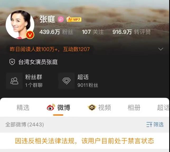 1月2日消息, 张庭林瑞阳夫妇微博被禁言, 二人微博个人主页均显示 “因违反相关法律法规, 该用户目前处于禁言状态”。