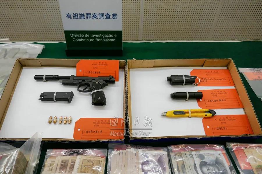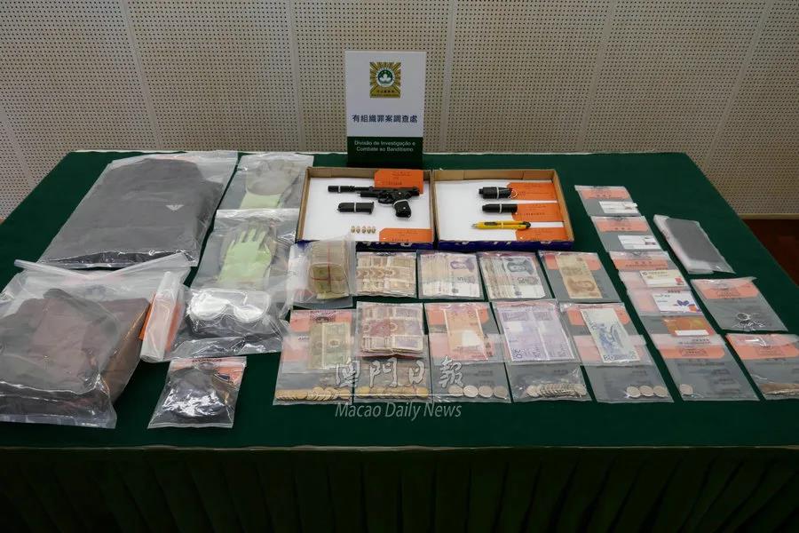 同日下午4时,治安警在亚马喇前地一休憩区发现一名涉案可疑男子,上前截查,当场在他身上搜获1支仿真黑色手枪和5发仿真子弹,同时在其随身的包内再搜获一个黑色破窗器,以及两张属于他人的内地身份证,其中一张相信是伪证。稍后,治安警在附近草丛寻获一个涉案的袋,经检查发现内有一把美工刀、两对手套、一副护目镜、一个黑色破窗器疑犯案工具,以及相信犯案时穿着的黑色外套。