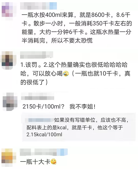 孙治强曾在媒体采访中表示,清汀气泡水的整体设计风格和元气森林拉平,并希望通过元气森林的带队,让所有消费者认为气泡水领域中只有元气森林和清汀两个品牌。 与主攻一线城市的元气森林不同,清泉出山的布局重点是下沉市场和校园渠道。清泉出山将自己的消费群体明确为15-25岁的年轻人,因而多选择如西安、昆明这类城市大力进行渠道铺设,这些城市相对体量较小、学生群体多,同时众多的旅游人口还能帮助辐射周边地区。 据清泉出山方面此前对外披露,其月销售量已做到近100万箱,目前估值为15亿元。 看完消息后 不少网友表示好气! 但也有人提醒 2150卡换算成千卡单位热量并不多 常喝的小伙伴也不用太紧张 知多D “卡路里”“卡”“千卡”“大卡”……,这些单位都是什么意思?该如何换算? 营养学中正规能量单位的用法是千焦或千卡——