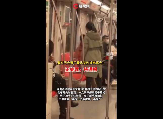 2022年1月4日,在南京地铁上,一名男子疑伸 " 咸猪手 ",被女乘客狂扇耳光。1月5日,现代快报记者了解到,目前地铁警方正在进一步处理此事。 来源晨视频截图 据目击者称,当时乘客们听到动静后,看到一名女子站在一名男乘客身前,对着座位上的男乘客连抽耳光,嘴里还喊着 " 再摸一下给我看看!" 那名男乘客一言不发,没有反抗。到达下马坊站后,地铁站一名工作人员进入车厢,将那名男乘客带下了车。 1月5日,现代快报记者了解到,目前地铁警方正对此事做进一步调查,处理结果还没有出来。 现代快报记者了解到,如果查实男子在车厢里摸女乘客,则涉嫌猥亵,应受到行政处罚。另外,女乘客遇到类似情况,要注意自身保护,最好喊周围的乘客一起控制住对方,并及时报警,让民警处理。