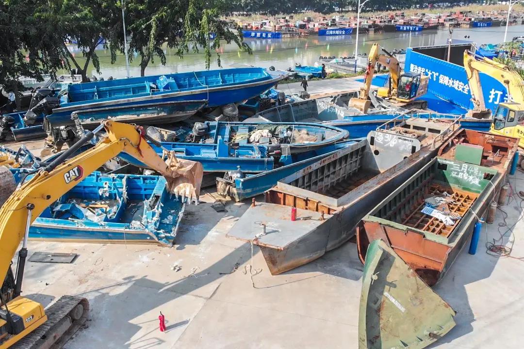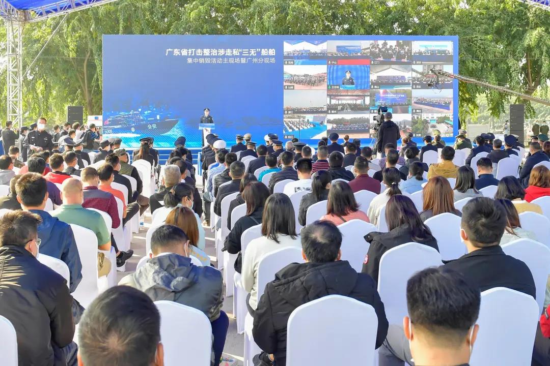 为严厉打击走私违法犯罪 深入推进涉走私“三无”船舶清理整治 1月6日上午,广东省打私办组织开展 全省打击整治涉走私“三无”船舶 现场集中销毁活动 广东省打私办在广州市番禺区 设立集中销毁主现场 深圳、珠海、佛山、汕尾、惠州 东莞、中山、江门、阳江、湛江 茂名、肇庆、清远等地市设立分现场 同步开展销毁活动 在此次活动中 各地共派出工作人员764名 出动巡逻执法艇64艘、警用直升机2架 钩机、挖掘机等拆船机械设备68台 现场销毁涉走私“三无”船舶362艘 在持续开展的 涉走私“三无”船舶清理整治活动中 有关部门集中清理 在海(水)域航行、停靠、停泊的 涉嫌走私偷渡的大马力快艇 铁壳船等“三无”船舶 开展了11拨次“海啸”突击行动 查扣各类涉走私“三无”船舶4412艘 据了解,2021年以来 广东省打私办严厉打击 冻品、成品油、洋垃圾 濒危物种和“水客”等走私违法犯罪行为 统筹海关、海警与公安打私、刑侦等警种 组织开展多个专项行动 发起打私“飓风”集群战役84个 查办各类走私案件23481宗 查扣涉走私冻品4.66万吨 香烟13.7亿支 查证走私成品油16.3万吨 及其他走私货物一批 案值达434.76亿元 《关于“三无”船舶联合认定办法》规定 “三无”船舶是指具有 无船名船号、无船舶证书、无船籍港等情形 在水上航行、停泊、作业的 各类机动、非机动船舶 以及其他按照船舶管理的 水上移动或漂浮设施、装置 不法分子利用大马力快艇等“三无”船舶 从事走私、偷渡等违法犯罪活动 严重影响水上生产、作业、运输正常秩序 威胁水上运输、作业人员生命和财产安全 并且关系到食品安全 群众身体健康及疫情防控大局