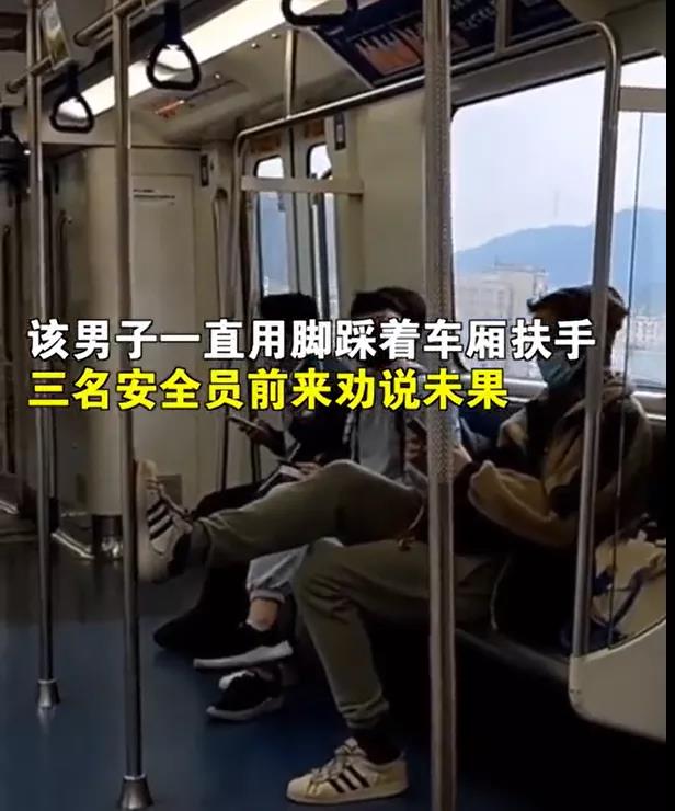 文明出行,你我同行。请广大乘客自觉文明乘坐地铁,遵守疫情防控等规定,共同营造良好乘车环境。 据@时间视频 此前报道,1月7日,网曝深圳地铁4号线,一外籍男子未正确佩戴口罩,还踩扶手。视频中,男子口罩露出鼻子,一女子怒斥并要求他把脚放下。男子一直用脚踩着车厢扶手,三名安全员前来劝说未果。9日,深圳地铁回应称,正在调查,安全员劝阻无效会报警处理。