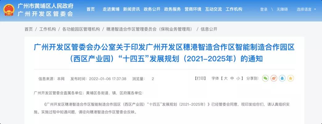 近日,广州开发区管委会办公室关于印发广州开发区穗港智造合作区智能制造合作园区(西区产业园)“十四五”发展规划(2021-2025年)的通知发布(以下简称“规划”)。