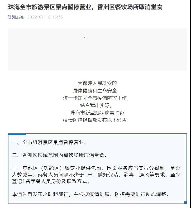 1月16日下午,珠海市新冠肺炎疫情防控指挥部办公室下发通知——为保障人民群众生命安全和身体健康,科学应对疫情,珠海市新冠肺炎疫情防控指挥部决定