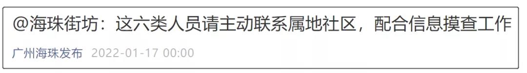 今天(1月17日)凌晨,广州海珠区发布倡议书,请六类特殊医疗救助人员主动联系属地社区,配合信息摸查工作。
