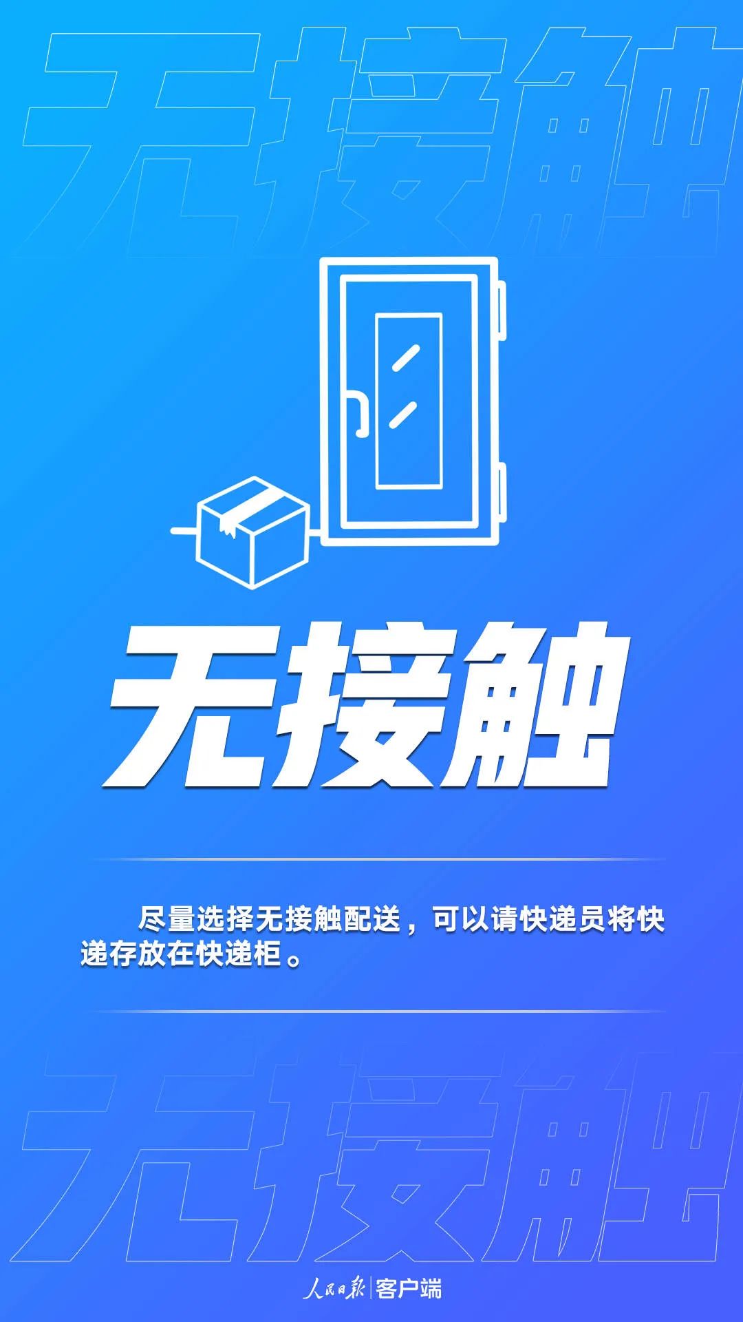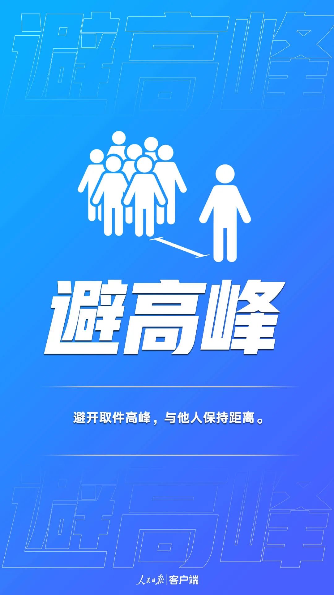 - 错峰取件,尽可能采取无接触式收取快递,如需当面签收,请与快递员保持安全距离。