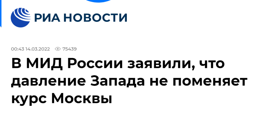 俄新社:俄外交部称西方施压不会改变俄(政策)路线
