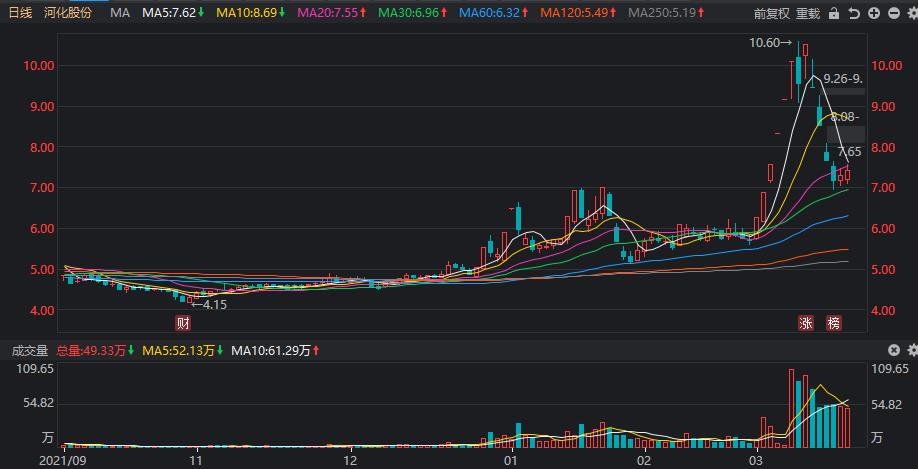 跌幅第六至第七的是:纵横通信,本周跌幅23.04%,主营业务是为运营商及铁塔公司提供网络建设,属于通信服务板块,该股在本周前处于持续上涨走势中;天域生态,本周跌幅22.6%,公司主营业务为园林绿化工程业务,属于基础建设板块,周一和周二连续跌停,该股业绩亏损,基本面不佳。 跌幅第八至第十的是:河化股份,本周下跌21.54%,主营业务为医药中间体的研发、生产与销售业务以及尿素委托加工销售业务,属于化学制药板块,上周四之前曾连续大涨;寒武纪,本周下跌21.28%,主营业务为人工智能芯片,属于半导体板块,本周有核心技术人员离职的利空影响;口子窖,本周下跌20.37%,白酒板块,本周公布业绩快报后大跌。