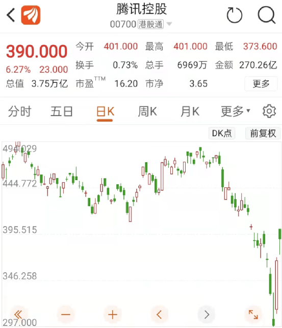 在段永平决定抄底当天,腾讯股价暴跌超10%,股价跌破300港元大关。此前,段永平曾公开披露了加仓腾讯的计划:“股价每掉10%,加一次仓。”