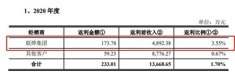 不仅如此,帝奥微对不同经销商还“区别对待”,不同经销商的经销商返利比存在较大差异。 报告期内,公司给予部分经销商一定的返利政策,当经销商因地区市场开拓、战略客户销售等原因需要以低于公司市场指导价格完成终端销售时,经公司审批通过后,给予其一定的返利。公司在报告期内对经销商客户的返利金额分别为382.5万元、302.87万元、 233.01万元和0万元。 而在2019年和2020年,公司对联烨集团的返利比例明显高于其他客户,以2020年度为例,联烨集团的返利比例高达3.55%,返利金额为173.78万元,相较之下其他客户的返利比例仅约0.67%。