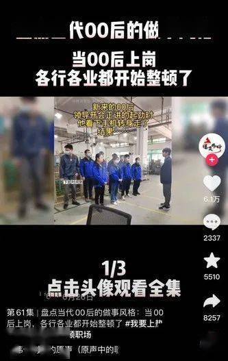 可慢慢开始,这些维护自身权益、对抗职场不公的行为,开始变了味儿。 抖音上的 “00后做事风格有多野”“00后是来整顿职场的”等短视频,点赞动辄几千几万。 这些视频是编剧编的,演员演的,为了博观众一笑,获得流量,设置了极其不合理的情节。