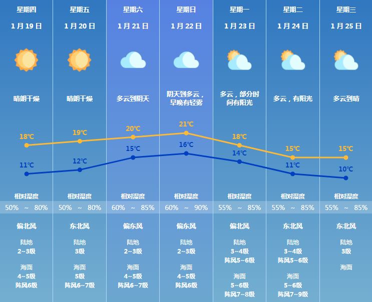 鸽了几天的阳光今天终于上线了 随着天气转为晴好干燥 气温也有了小幅回升 非常适宜洗晒 市气象台于1月18日15时50分 发布全市森林火险黄色预警信号 预计明后两天我市晴朗干燥 森林火险等级较高 请注意森林防火和各项用火安全 虽然天空放晴,气温回升 但是早晚天气依旧比较冷 预计明后两天最低气温维持在11-12℃ 小伙伴们仍需注意添衣保暖 随着冷空气逐渐减弱 到了除夕至大年初一 受偏南暖湿气流影响 珠海的云量增多,早晚有轻雾 气温将继续回升到20+℃ 不过厚衣服别急着收起来 展望大年初二起 新一股冷空气将南下影响珠海 届时北风加大,气温再度下降 小伙伴们请注意留意天气变化 提前祝大家新年快乐~ 【温馨提示】 未来几天早晚较冷,请注意防寒保暖 天气干燥,森林火险等级较高 家居用火用电请注意安全 【珠海未来七天预报】 文章来源于珠海气象,如有侵权请联系删除。本文仅代表作者观点,不代表大湾网的观点立场。 |