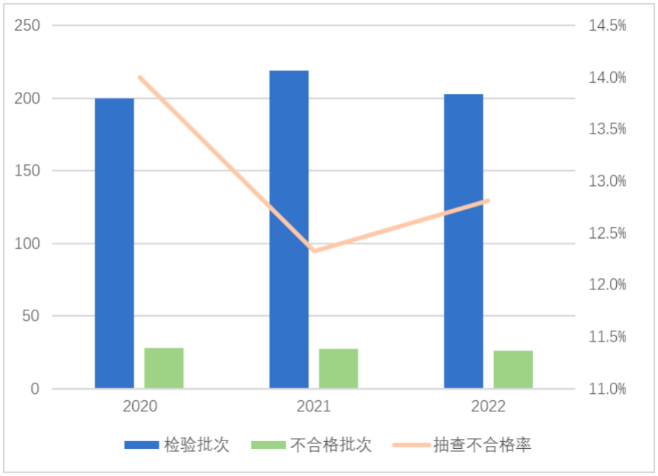 本次重点抽查了产业集聚区湖南省、江西省的生产企业,分别抽查检验了133批次、47批次产品,抽查不合格率分别为12.0%、12.8%。