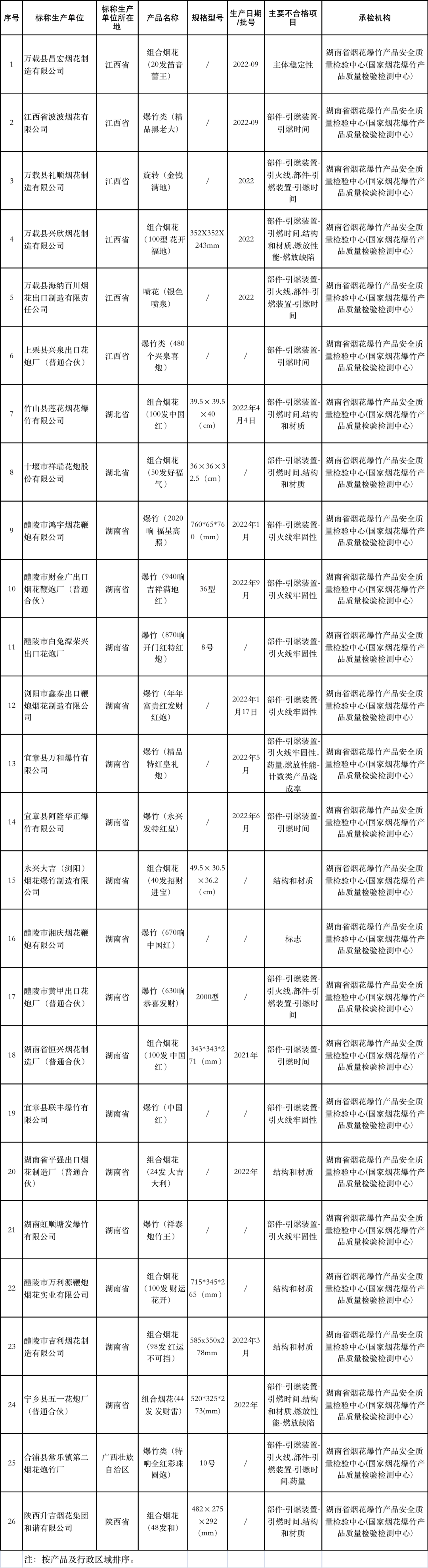 近期,市场监管总局组织开展了烟花爆竹产品质量国家监督抽查。现将抽查情况通报如下: