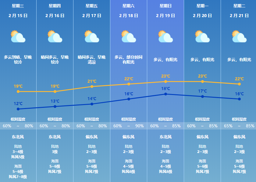 今天下午开始 在阿冷的发力下 相对湿度持续下降 太阳也开始有点露头 干爽天气要开始啦!! 在干燥的偏北气流影响下 明天(15日)开始转晴冷天气 未来三天(15-17日)持续天晴干燥 大家伙洗晒工作抓紧安排啦 但由于晴空辐射影响 15-16日早晨最低温只有12℃左右 还是有点冷滴 记得早晚适时添衣哟 总结一下未来三天的天气就是 晴晴晴 早晚天气较冷 白天阳光充足 昼夜温差大 长袖外套少不了 对对对 冷空气过程除了降温 别忘了还有大风 近期海面阵风较大 海上交通、滨海旅游等要注意安全哟 【珠海未来七天预报】 文章来源于珠海气象,如有侵权请联系删除。本文仅代表作者观点,不代表大湾网的观点立场。 |