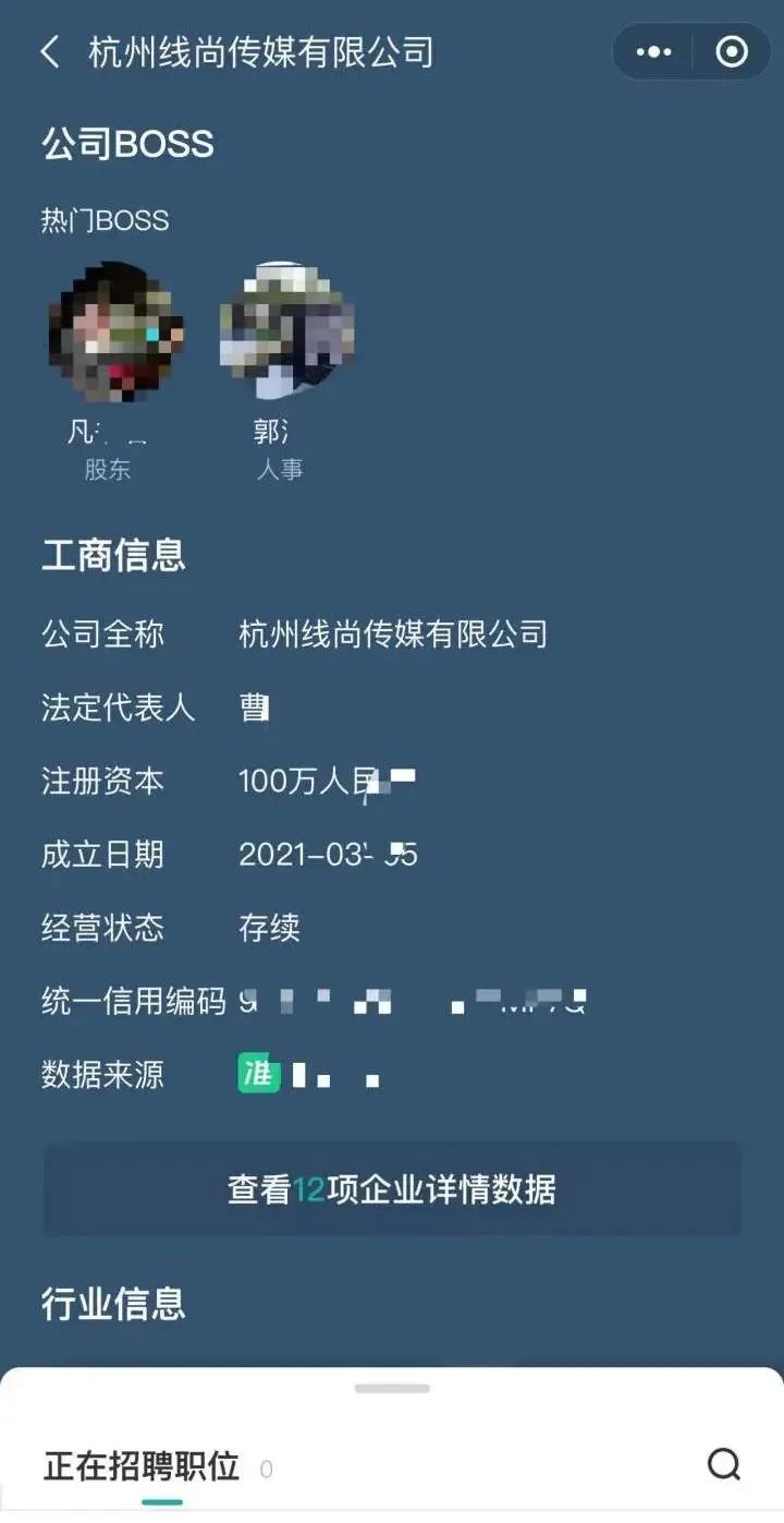 “就一直拖着,这样一块钱算怎么回事?”张先生不理解,“我到现在也没收到钱,一分都没有。”90后的张先生是2022年底通过招聘网站入职杭州线尚传媒有限公司的,岗位是编导,入职时谈好的底薪一万二加提成,“我们是通过视频讲故事带货。”“我爱人是做数据分析的程序员,杭州有比较好的工作机会,我自己偏向自由职业,所以就一起来杭州了。”之前,张先生一直在其他城市从事视频制作类工作,在视频类新媒体运营方面有从业经验。他说,面试的时候聊得蛮好:“通过讲述感人的小故事来完成普通人带货。”公司上班时间是中午12点到晚上9点,“有时候快下班的时候组织开会,一开就一个多小时。”周末也不能正常休息,“我本身比较顾家喜欢和家人在一起,我加班,爱人周末只能独自去西溪湿地逛逛。”遇见猫咪打疫苗,张先生也不能陪着,“可能不养宠物的人不大能理解,我觉得(带猫咪打疫苗)是一件很重要的事情。”这些还能克服,让张先生产生离职想法的是年初公司的上班安排,“本来元旦假期就只休息了一天,公司通知说要从1月2日上到1月19日。”1月12日,公司通知张先生按照公司规章制度进入正常离职流程,填写报销单等等。在公司任职一个月,张先生说应该支付的工资加上垫付的费用,总共一万五千多块,“报销的主要是涉及视频拍摄时候的车费、场地租用的一些费用。”根据张先生提供的联系方式,2月16日,记者联系到了这家公司一位姓凡的负责人。凡先生表示,对于公司前员工的工资结算问题,已经在走相关流程。当记者进一步问一块钱工资是怎么回事的时候,凡先生强调自己是公司的投资人,并非日常运营管理人员。随后,记者通过天眼查等了解到,凡先生确实不是该公司法人。不过,在求职网站上,杭州线尚传媒有限公司的股东是凡先生,另一名人事为郭先生。根据张先生提供的微信聊天记录,日常凡先生会在公司群里和大家互动。提出离职后,张先生被凡先生移出公司群聊。“也没有发生什么不愉快。”张先生一直没有收到在职期间的工资。除了张先生没有收到过工资,还有人则表示“少了”。