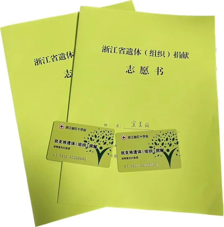 近日,家住杭州拱墅区上塘街道假山新村的宣美丽,在假山路社区与省红十字会工作人员的见证下,在浙江省遗体捐献志愿书上签上了自己的名字。
