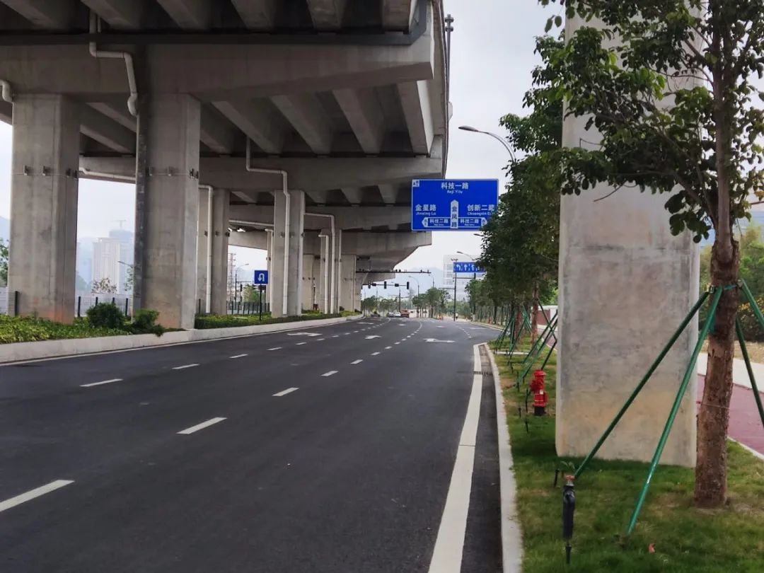该项目港湾大道至科技四路段的地面辅道(金凤路)为双向6车道,在今年率先开放通行,可有效缓解金星路的交通压力,打通路网瓶颈,将更好发挥路网对产业发展的支撑作用。