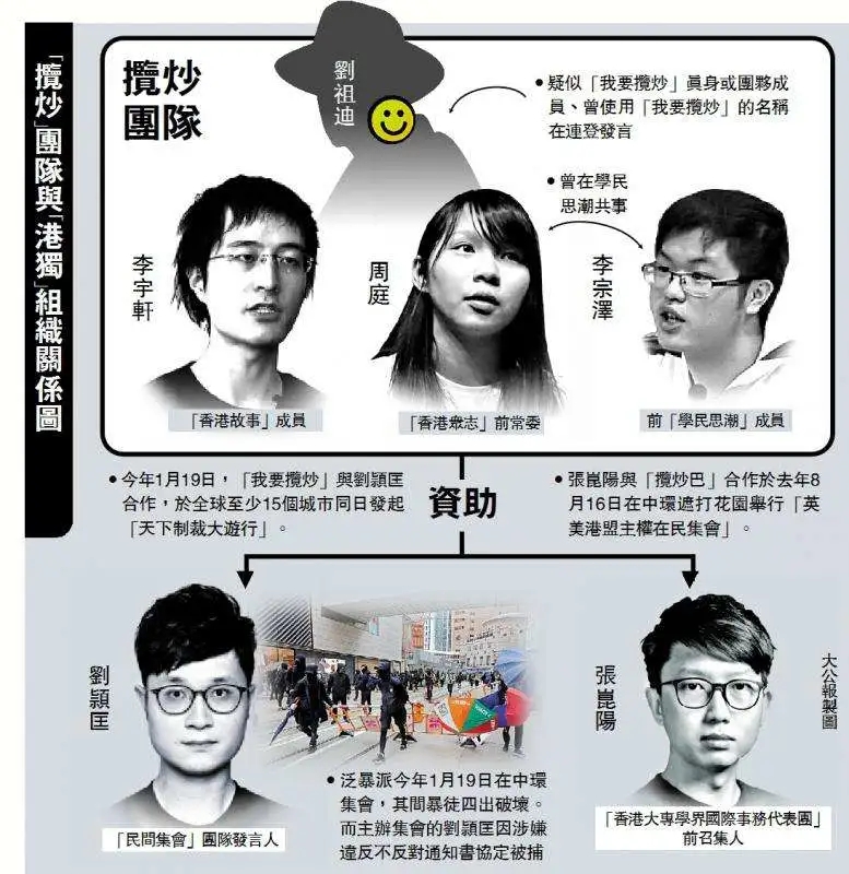 香港警方日前以涉嫌“勾结外国或境外势力危害国家安全”等罪名拘捕了名为“我要揽炒”的多名成员,并通缉网名为“揽炒巴”的刘祖迪。 ▲“我要揽炒”团队与“港独”组织关系图 来源:香港大公报 随着调查深入,一直在香港搞事的“我要揽炒”的团队成员终于被揭下面纱。该组织除了勾结境外的反华组织,也与香港多个“港独”分子有密切联系。最近一年,这些“港独”组织通过境外众筹网站至少取得了超过5300万港元的款项。 成员面纱被揭, 多次募资“搞事” 据港媒报道,“我要揽炒”团队的成员包括前“香港众志”常委周庭、前“青政”游蕙祯助理李宗泽,及所谓“香港故事”的李宇轩。而团队“首脑”——“揽炒巴”,中文名为刘祖迪,据称已于今年初潜逃到英国。 不仅如此,去年香港黑暴至今,“我要揽炒”团队与“香港众志”、“G20”团队、香港大专学界国际事务代表团等,频频在境外网站发起众筹,至少取得了5300万港元。其中,“我要揽炒”团队发起三个众筹,获得近3000万港元。 黎智英等“帮忙”, 警方正在调查 此外有消息显示,黎智英等人涉嫌利用香港及外国账户,以不同的金融操作方式向“揽炒”团队提供资金支持。有关资金频繁辗转于香港及海外多个账户,有一笔款项就高达100万港元。而黎智英次子黎耀恩名下的餐厅也涉及有关资金运转的环节。警方目前正在重点追查资金去向,追查对象包括“苹果日报慈善基金”等。 多次煽动黑暴, 屡屡勾结外力 据了解,“我要揽炒”团队曾多次策动香港黑暴游行,主要包括2019年8月31日及2019年11月2日的两次大规模黑暴事件。在2019年8月31日前夕,“揽炒巴”刘祖迪分别在两个不同社交媒体平台的群组贴文,称831游行是“终局之战”,指示鼓动黑暴分子到香港多地“遍地开花”,最终导致8月31日当天发生多起大规模黑暴事件。 而除了负责筹款及向黑暴分子发号施令以外,“我要揽炒”团队更长期与外国势力勾结。去年12月黑暴有所降温后,“我要揽炒”团队还派成员到多个国家“游说”政客支持“制裁香港”。 去年12月初,“我要揽炒”团队与“大专学界”团队在网上发布的所谓“制裁名单”,与最近美国公布的所谓制裁名单高度吻合。 出逃还在搞事, 必受法律严惩 今年5月,网上还流传一段声称是“揽炒巴”的录音讲话。在讲话中,他声称自己正身处海外,“资金长期妥善放在外国银行,揽炒团队也会继续组织、支援世界各地反击行动。” 香港国安法实施后,该组织仍继续运作,包括继续进行支持“港独”的众筹活动等。对此,香港法学交流基金会副主席、执业大律师丁煌表示,香港目前按众筹活动不同目的及性质进行规管,如涉及“反中乱港”、煽动“港独”等,则涉嫌违反香港国安法、洗黑钱和诈骗等罪名。 来源:央视网 |