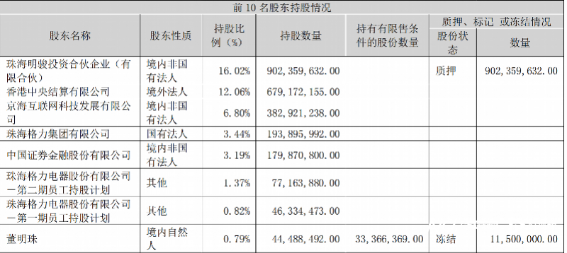 乌龙!格力电器原一季报称董明珠1150万股被冻结