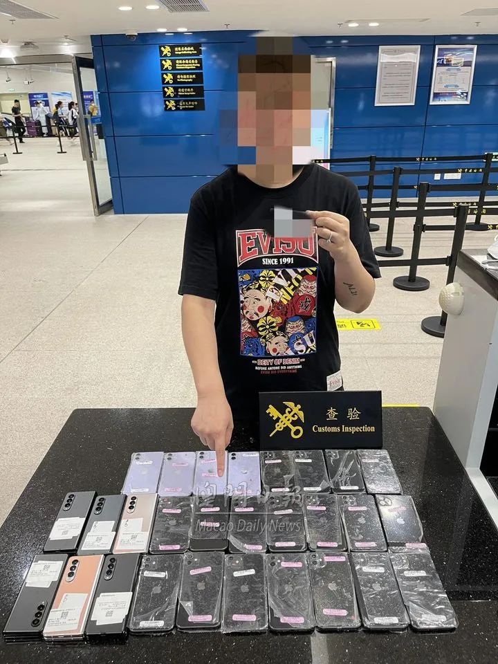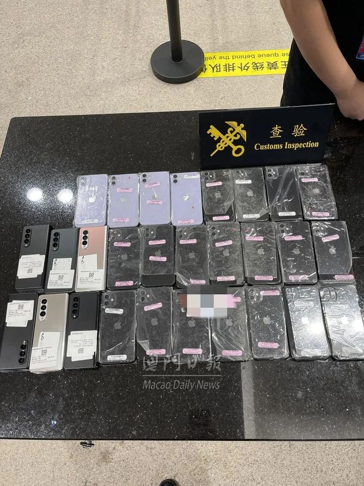 拱北海关所属青茂海关近日查获一宗旅客绑藏28台旧手机入境内地案件。