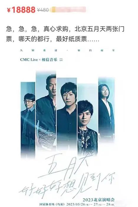 五月天演唱会在即,网上“求票”的人多了起来。