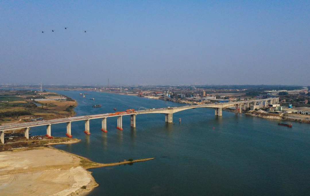 广佛肇高速是粤港澳大湾区推动“广佛同城”,加速“肇庆带入”的重点项目工程建设,也是广东省重要出省地下通道,其中的北江特大桥是广佛肇高速两线关键控制性建设工程之一。大桥位于佛山市三水区与肇庆市大旺区交界处,跨越北江连通两地。2021年4月16日,大桥建成通车,标志着广佛肇高速实现全线贯通,粤港澳大湾区再添一条交通大动脉。图为北江特大桥。