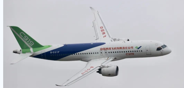 机身前部印有“全球首架”的“中国印”标识和对应英文。飞机注册号B-919A,“B”代表飞机的中国国籍,“919”和型号名称契合,“A”则有首架之意,突显这一全球新机型、全球首架的非凡意义。