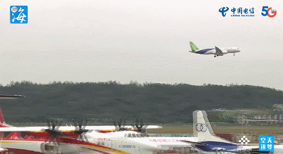 今天执行商业首飞的C919飞机为164座两舱布局,公务舱8座,经济舱156座。客舱内饰、旅客座椅、机载娱乐系统和飞机外部涂装做了定制化设计。