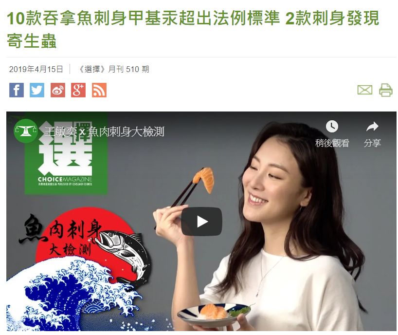 香港的食品安檢嚴格,大家在香港吃日料都較心安。但消委會早前測試了市面上50款三文魚和吞拿魚刺身樣本,在太古康怡廣場元氣壽司的吞拿魚刺身樣本及荃灣魚尚的三文魚柳樣本中發現線蟲,前者並且有蟲卵。檢測出的寄生蟲不確定是否為活蟲。