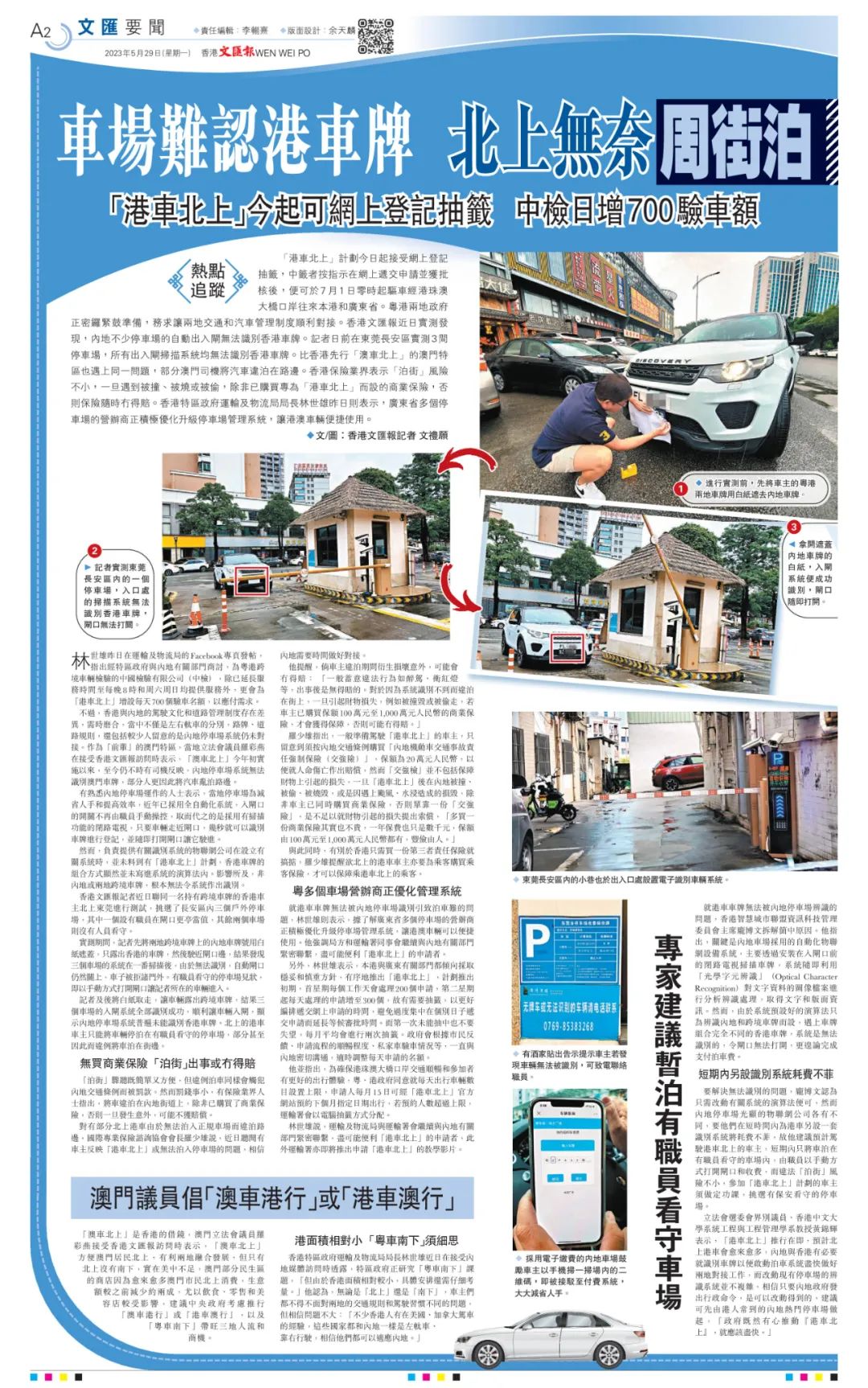 進行實測前,先將車主的粵港兩地車牌用白紙遮去內地車牌。 記者實測東莞長安區內的一個停車場,入口處的掃描系統無法識別香港車牌,閘口無法打關。 拿開遮蓋內地車牌的白紙,入閘系統便成功識別,閘口隨即打開。「泊街」驟聽既簡單又方便,但違例泊車同樣會觸犯內地交通條例而被罰款。然而罰錢事小,有保險業界人士指出,將車違泊在內地街道上,除非已購買了商業保險,否則一旦發生意外,可能不獲賠償。對有部分北上港車由於無法泊入正規車場而違泊路邊,國際專業保險諮詢協會會長羅少雄說,近日聽聞有車主反映「港車北上」或無法泊入停車場的問題,相信內地需要時間做好對接。他提醒,倘車主違泊期間衍生損壞意外,可能會冇得賠:「一般蓄意違法行為如醉駕、衝紅燈等,出事後是無得賠的。對於因為系統識別不到而違泊在街上,一旦引起財物損失,例如被撞毀或被偷走,若車主已購買保額100萬元至1,000萬元人民幣的商業保險,才會獲得保障,否則可能冇得賠。」羅少雄指出,一般準備駕駛「港車北上」的車主,只留意到須按內地交通條例購買「內地機動車交通事故責任強制保險(交強險)」,保額為20萬元人民幣,以便就人命傷亡作出賠償,然而「交強檢」並不包括保障財物上引起的損失,一旦「港車北上」後在內地被撞、被偷、被燒毀,或是因遇上颱風、水浸造成的損毀,除非車主已同時購買商業保險,否則單靠一份「交強險」,是不足以就財物引起的損失提出索償,「多買一份商業保險其實也不貴,一年保費也只是數千元,保額由100萬元至1,000萬元人民幣都有,豐儉由人。」與此同時,有別於香港只需買一份第三者責任保險就搞掂,羅少雄提醒欲北上的港車車主亦要為乘客購買乘客保險,才可以保障乘港車北上的乘客。就港車車牌無法被內地停車場識別引致泊車難的問題,林世雄則表示,據了解廣東省多個停車場的營辦商正積極優化升級停車場管理系統,讓港澳車輛可以便捷使用。他強調局方和運輸署同事會繼續與內地有關部門緊密聯繫,盡可能便利「港車北上」的申請者。另外,林世雄表示,本港與廣東有關部門都傾向採取穩妥和慎重方針,有序地推出「港車北上」,計劃推出初期,首星期每個工作天會處理200個申請,第二星期起每天處理的申請增至300個,故有需要抽籤,以更好編排遞交網上申請的時間,避免過度集中在個別日子遞交申請而延長等候審批時間。而第一次未能抽中也不要失望,每月平均會進行兩次抽籤。政府會根據市民反饋、申請流程的順暢程度、私家車驗車情況等,一直與內地密切溝通,適時調整每天申請的名額。他並指出,為確保港珠澳大橋口岸交通順暢和參加者有更好的出行體驗,粵、港政府同意就每天出行車輛數目設置上限,申請人每月15日可經「港車北上」官方網站預約下個月指定日期出行,若預約人數超過上限,運輸署會以電腦抽籤方式分配。林世雄說,運輸及物流局與運輸署會繼續與內地有關部門緊密聯繫,盡可能便利「港車北上」的申請者,此外運輸署亦即將推出申請「港車北上」的教學影片。 採用電子繳費的內地車場鼓勵車主以手機掃一掃場內的二維碼,即被接駁至付費系統,大大減省人手。就港車車牌無法被內地停車場辨識的問題,香港智慧城市聯盟資訊科技管理委員會主席龐博文拆解箇中原因。他指出,關鍵是內地車場採用的自動化物聯網設備系統,主要透過安裝在入閘口前的閉路電視掃描車牌,系統隨即利用「光學字元辨識」(Optical Character Recognition)對文字資料的圖像檔案進行分析辨識處理,取得文字和版面資訊。然而,由於系統預設好的演算法只為辨識內地和跨境車牌而設,遇上車牌組合完全不同的香港車牌,系統是無法識別的,令閘口無法打開,更遑論完成支付泊車費。要解決無法識別的問題,龐博文認為只需改動有關系統的演算法便可,然而內地停車場光顧的物聯網公司各有不同,要他們在短時間內為港車另設一套識別系統將耗費不菲,故他建議預計駕駛港車北上的車主,短期內只將車泊在有職員看守的車場內,由職員以手動方式打開閘口和收費,而違法「泊街」風險不小,參加「港車北上」計劃的車主須做定功課,挑選有保安看守的停車場。立法會選委會界別議員、香港中文大學系統工程與工程管理學系教授黃錦輝表示,「港車北上」推行在即,預計北上港車會愈來愈多,內地與香港有必要就識別車牌以便啟動泊車系統盡快做好兩地對接工作,而改動現有停車場的辨識系統並不複雜,相信只要內地政府發出行政命令,是可以改動得到的,建議可先由港人常到的內地熱門停車場做起,「政府既然有心推動『港車北上』,就應該盡快。」 文章来源于香港文汇报,如有侵权请联系删除。本文仅代表作者观点,不代表大湾网的观点立场。 |