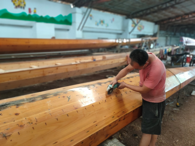 水上百舸争流,岸边人潮涌动,暌违三年,广东各地龙舟赛强势回归,也让东莞市中堂镇霍沃标龙船厂“爆单”了。 “去年只卖了1条船,现在订单恢复到正常水平。”龙船厂负责人霍沃标之子霍文忠说。他的造船厂今年收到20多条龙舟的订单,售价约10万元/条。 中堂镇是“中国龙舟之乡”,“中堂龙舟制作技艺”被列为国家级非物质文化遗产。近年来,该镇有工匠在造船之余推出龙舟文化IP产品,寻找新的生意经。作为省级非遗传承人,冯沛朝便通过制作龙舟模型、小龙头等工艺品,让造船厂捱过了龙舟赛停办的三年。 在节庆经济之外,进一步挖掘开发龙舟文化的产业价值,这也是中堂镇正在探索的一个方向。2019年起,当地开始推动打造龙舟文创产品,但目前还处于政府引导阶段。中堂镇文化服务中心非遗专干邵学成认为,未来还需企业参与,尤其需要热爱传统文化且有想法的年轻力量加入。 龙舟赛恢复后,中堂镇迎来千帆竞速的盛大场面。受访者供图赛事恢复产业回暖 端午节前一周,造龙舟进入尾声。工厂里弥漫着浓重的木料和桐油气味,地面满是加工残余的木屑。偶有龙舟队成员到厂里“看船验货”。 霍沃标龙船厂是中堂镇生产量最大的龙舟造船厂。龙舟赛重新打响,厂里的订单量恢复到疫情之前的状态。3月开始接到订单后,厂里便召集工人,开足马力造船。 霍沃标龙舟厂的工人正在打磨加工龙舟。中堂镇位于东莞的水乡片区。水网密布、河湖纵横的水文特征,造就了发达的水路运输。以船代步的生活习性,让当地造船业辉煌一时,有300多年的龙舟制造史。 年过七旬的霍沃标,是中堂镇龙舟制作技艺传承人之一,出生于当地的造船世家,家族制作龙舟超过200年。霍沃标是第六代传承人,不仅掌握东莞中堂“大头龙”的制作技艺,还熟悉龙骨、蝴蝶底等各部件的尺寸,是当地现存为数不多掌握“传统大龙舟”制作技艺的工匠之一。 霍沃标的儿子霍文忠说,今年收到20多条龙舟的订单,售价约10万元/条。生产一条龙船,包括选底骨、起底、上漆料、装龙头等14个步骤,周期约10天,高峰时要安排15名师傅同时赶工,才能交付订单。厂里的龙舟主要售往东江流域地区,包括东莞多个乡镇,以及广州黄埔、增城等地。“之前龙舟赛停办,去年只卖了1条船。现在订单恢复了。”他补充。 恢复赛事,中堂镇的龙舟订单数涨起来。邵学成介绍,今年全镇4家龙船厂,共接到60多条大龙舟的生产订单。 竞赛驱动龙舟迭代 6月10日举办的2023粤港澳龙舟邀请赛暨东莞龙舟锦标赛上,中堂龙舟队在强手如林的赛场上绝地反击、一举夺魁,这让全镇的龙舟爱好者兴奋自豪。而令霍文忠骄傲的,还有赛场上夺得第一、三、四名的龙舟队,其“战舰”皆出自霍沃标龙舟厂。 从传统习俗向体育竞技转型,是赛龙舟的一个趋势。1984年,东莞龙舟队赴香港参加第七届国际龙舟邀请赛勇夺冠军。此后,东莞多支龙舟队伍包揽国内外大型赛事的奖项。 赛场上的“速度与激情”,对龙舟的性能提出更高要求,这让龙舟厂的经营者锚定转型方向。 霍文忠介绍,传统龙舟用喜潮、耐用的松木制成,闲时放置在河涌,等到龙舟赛时取出来参赛,一艘松木龙舟可用十余年。但是,松木笨重,且船身较厚,无法满足龙舟高速行驶的需求。那时候,外地制作竞速龙舟的厂家,开始进入东莞市场,对传统的龙舟造型带来冲击。 “需求转变,我们得跟着市场走。”霍文忠回忆,父亲霍沃标于2005年前后调整龙舟的用料、性能,并更新制船的流程设备。如今的龙舟,改用轻便的杉木为原料,在长度仍保持在31米左右、容纳60人的同等前提下,总体重量比传统松木龙舟轻1.5-2倍,讲求“轻小薄窄”,便于在水上高速行驶。 霍沃标正在制作龙舟。受访者供图杉木轻盈,但易损耗,制成龙舟后,使用寿命大约两三年,淘汰更新的速度更快。此外,龙舟竞技赛日益增加,赛况愈加激烈,催生更多订单。中堂镇一名龙舟爱好者透露,全镇20个行政村(社区),平均每村(社区)约有3-4艘龙舟,加上来自不同地区的订单,有相对庞大的需求。 靠着口碑,霍沃标龙舟厂向省外市场拓展客户。霍文忠说,2011年,自家的龙舟在福州的龙舟锦标赛上取得第一名的成绩。此后,便开始承接省外的订单。如今,厂里制作的龙舟,销往福建、广西、湖南等地。 “没有这么多竞赛前,龙舟需求量不大,大约五六条一年。现在正常情况下,一年卖二三十条龙舟。比赛提供了机会,让我们看清市场需求。”霍文忠说。 龙舟景日乡厨爆单 “龙舟景”是岭南地区特有的活动。“景”即龙舟聚集之日,各村镇通过龙舟串门,联络感情。按照传统风俗,中堂龙舟景期间,辖内20个村(社区)中,先后有9个“景日”。 6月19日是农历五月初二,正值“斗朗景”,这是斗朗村的盛事。阵阵鼓声中,龙舟入水游弋,队员奋力划桨。之后,便是吃“龙船饭”的时刻。 今年,霍沃标父子在工棚里开了20席“龙船饭”,宴请亲朋好友和邻里乡亲。白切鸡、油焖大虾、豉汁蒸白鳝......地道菜肴撑起主人家宴客的牌面。 龙船饭也是节日里的一门生意。斗朗村村民霍伟谦经营流动宴席十多年,今年负责霍沃标龙船厂的宴席。他说,传统的龙船饭比较简单,把生米、豆角、瘦肉、冬菇、鸡蛋炒熟,装在竹箩里,用来慰劳龙舟队队员。随着人们物质生活改善,龙舟饭增加到九菜一汤,也就是珠三角常说的“九大簋”。 霍沃标的龙舟厂在“龙舟景