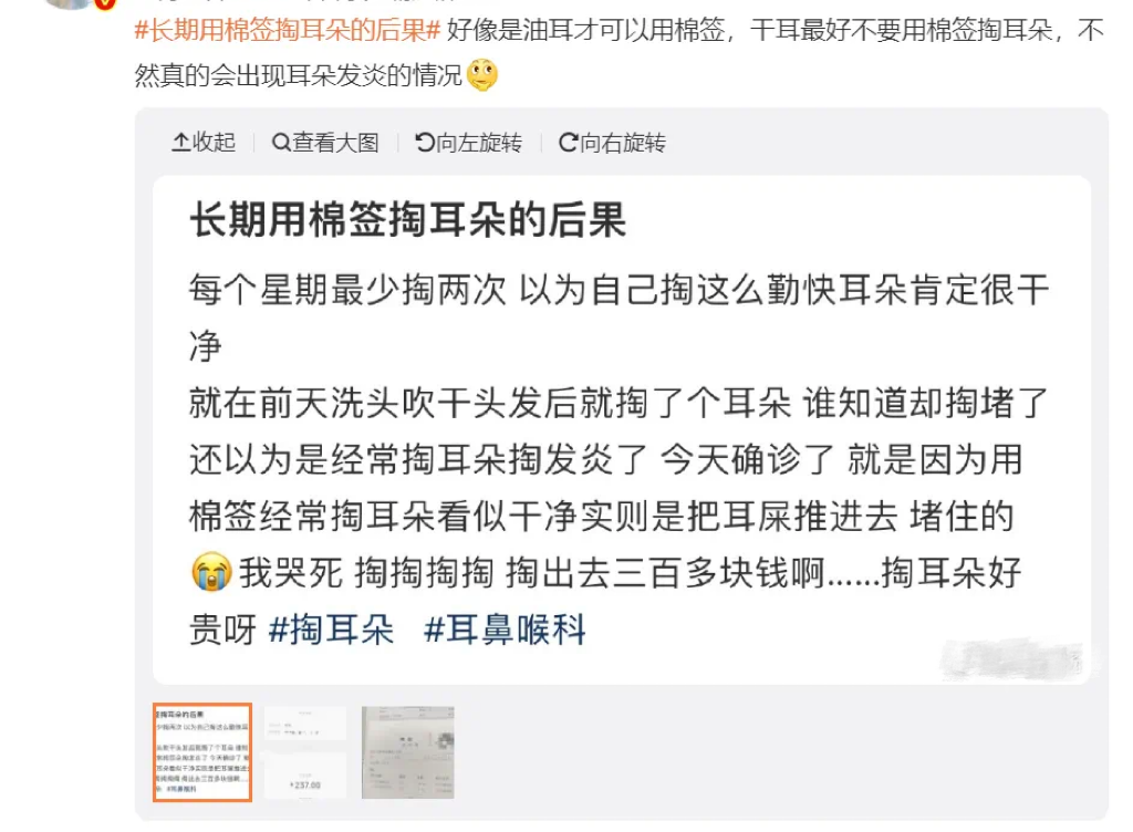 很多人喜欢拿棉签掏耳朵 相信不少网友也有这个习惯 近日, 话题#长期用棉签掏耳朵的后果# 还登上了热搜。 一位网友分享了自己频繁用棉签掏耳朵导致堵塞的经历,而评论区中有过类似经历的网友也不在少数。 不过,你以为掏耳朵掏出来的 一定是耳屎? 也许会有意想不到的…… 比如蟑螂!还是半只! 浙江省医疗健康集团 杭州医院(杭钢医院) 耳鼻喉科耳鼻喉科李禹诺医师 前段时间就接诊了一位 心大的“狠人”刘先生。 询问病史时,刘先生表示睡觉的时候感觉有东西爬进了耳朵,“当时就感觉耳朵里声音很响,还很痛,直接就用手去掏了。”掏出来一看——似乎是一只小蟑螂,但只有一半的身体。也就是说,还有一半可能还留在耳朵里。 “掏了一半出来感觉就还行了,也不是那么痛,我就以为没事了。”谁知道过了两天耳朵越来越痛,实在受不了,刘先生到医院就诊。 李医生说,刘先生刚来的时候耳道壁充血肿胀得厉害,可以看到有半只蟑螂尸体卡在里边。还好,取出长度约5mm的半截蟑螂后,李禹诺检查发现刘先生的鼓膜还是完好的,没有受损,问题不大。 “如果耳朵进异物,最好不要自己尝试用手或者棉签去掏,因为耳道很窄,外耳道壁和鼓膜很脆弱,自己擅自处理很容易加大医生取异物的难度和风险。尤其是虫子之类的活物,很可能会让虫子用力往里面跑从而让鼓膜受伤。因此,最好第一时间就到医院就诊。”李医生提醒。 其实,掏耳朵掏出事的 还真不少 有人频频掏耳朵竟然 掏出了恶性肿瘤。 还有人因共用 沾上耳道真菌的棉签 把耳朵给掏聋了 “其实,无论是所谓的油耳还是干耳, 都不建议大家长期用棉签掏耳朵, 因为这只会将耳屎推向耳道更深处, 从而造成堵塞。” 杭钢医院耳鼻喉科 洪飞龙副主任医师表示。 “耳屎的学名叫‘耵聍’,是由耳道软骨皮肤内的耵聍腺自行分泌出来的物质,混合灰尘、皮屑等形成,是保护耳道的分泌物。” 洪飞龙说,大部分多余的耳屎都会随着我们咀嚼食物或在运动过程中自行脱落。频繁清理耳屎,反而会让耳朵越掏越痒,并且容易增加感染的风险。一旦操作不当,棉签伸入过深,还容易造成鼓膜撕裂。“曾经,我们也接诊过掏耳朵时棉签头掉落在耳朵里的患者,直到造成堵塞感才赶来医院处理。” 可是, 不掏耳朵难受怎么办? 医生建议,平日里如果耳朵实在痒,可以用小手指挠挠,或者轻按耳道口的软骨就行。而如果感到耳朵有堵塞感、疼痛或听力下降,就要及时到医院处理了。 文章来源于潇湘晨报,如有侵权请联系删除。本文仅代表作者观点,不代表大湾网的观点立场。 |