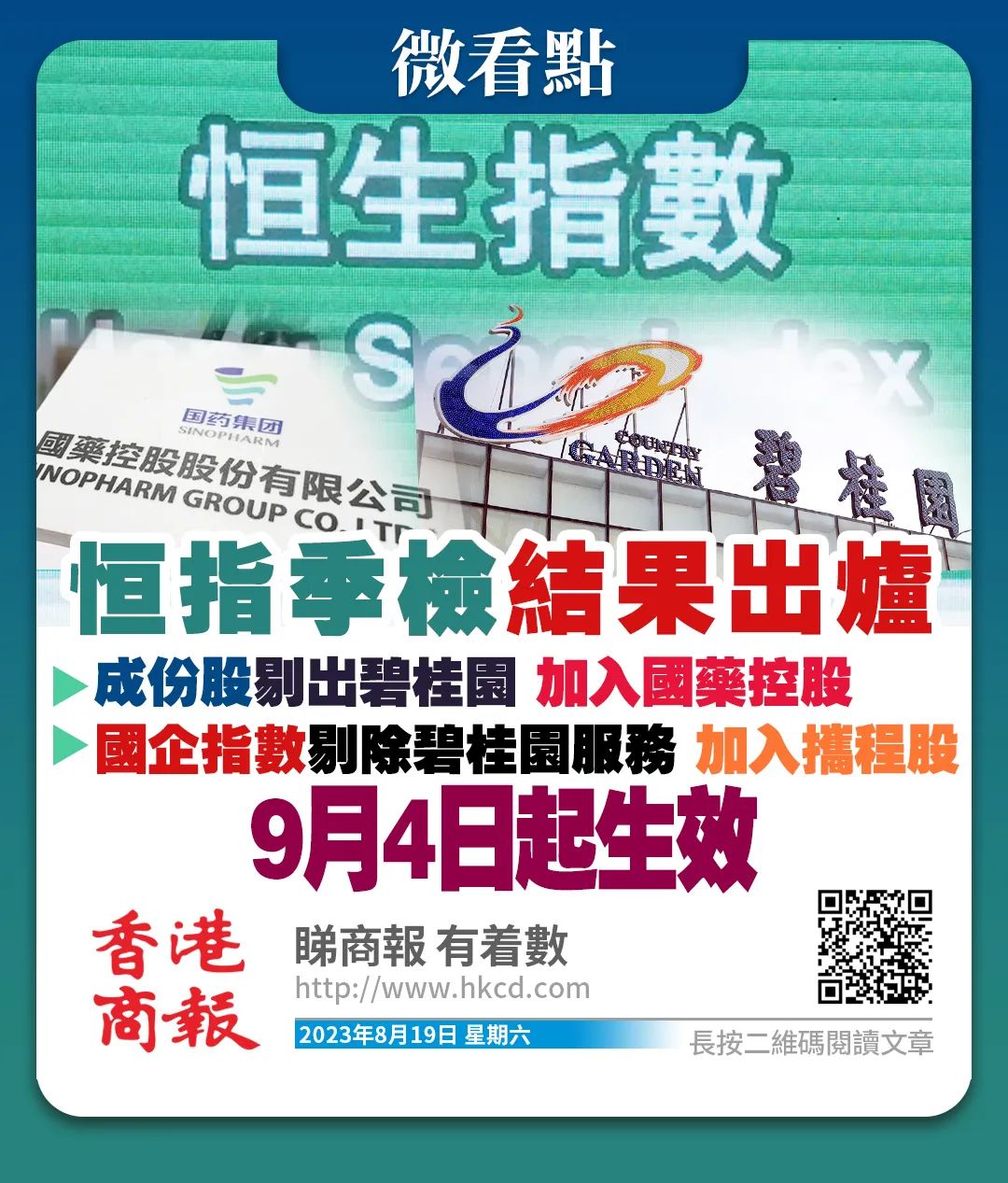 碧桂園被剔出恒指 國藥染藍