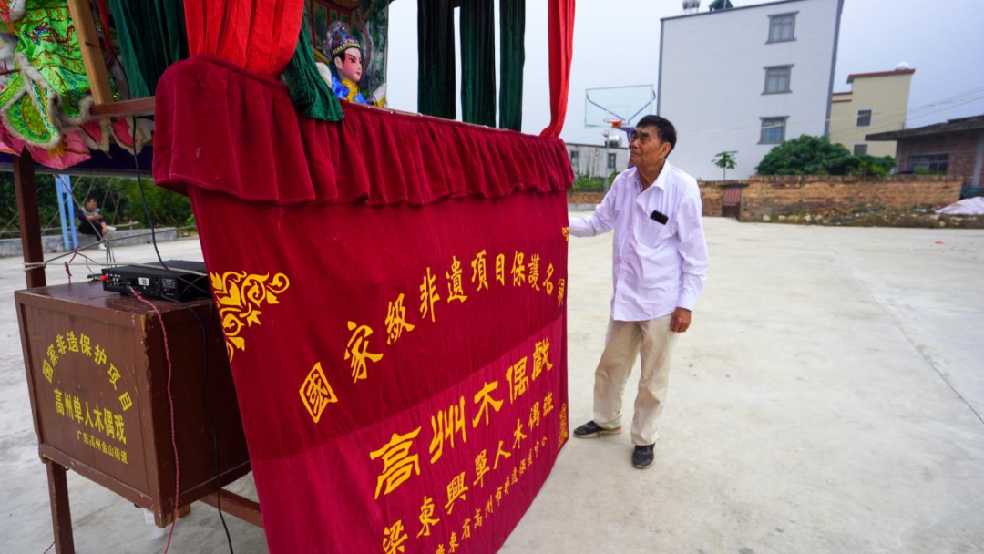 木偶戏 据《茂名市志》(1979—2000)记载,明万历年间,随着闽南人向粤西大量移居和文化交流,布袋木偶戏传入粤西,与南朝宋时由中州传入粤西的杖头木偶戏结合,逐渐演变成高州木偶戏,地方称之为“傀戏”“傀仔戏”。 高州木偶戏以杖头木偶为主。艺人通过在木偶身躯及肢体关键部位安装操纵杆,暗藏玄机。本没有生命的木偶,在表演者的操控下,能表达喜怒哀乐,演绎人间悲欢,深受人们喜爱。 高州木偶戏最原始的形态为单人木偶戏,称为小班。整台戏敲锣、打鼓、操控木偶、唱戏文等全由一个人完成,表演难度大,观者无不惊叹不已。如今,在很多地方单人木偶戏已经失传,但在高州,单人木偶戏的第五代传承人梁东兴,依旧在村头巷尾四处转场。