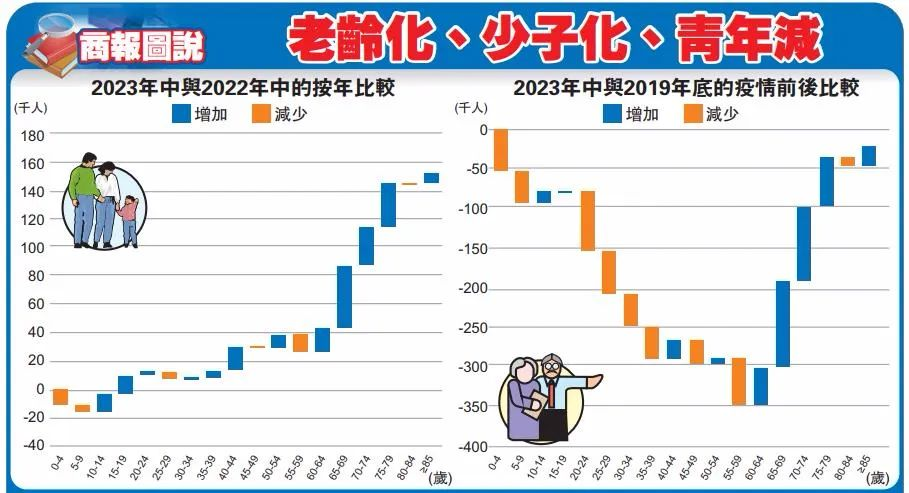 | 香港人口显著回升至749.81万人,跟疫前高位的752.05万,仅差距2.2万人左右。什么因素令人口回升?而按年龄划分,香港最新人口变化呈现「老龄化、少子化、青年减」的状况,需要引起足够的重视。 通关: 香港人口大上大落重大因素 居港人口分为:常住居民与流动居民。前者是指统计时点的前后6个月内,在港逗留最少3个月的,而后者则是逗留最少1个月但少于3个月的。 翻查疫情之前,占了居港人口97%的常住居民,每年稳步增长0.5%至1%左右;至于流动居民,由于仅占人口3%,近年人数并介乎21万至23万,故任何变动俱不明显。 然而,疫下香港通关不顺,流动居民难免不易流动。自疫情爆发,流动居民人数一直下跌,最高峰时一度只剩7.84万,即较疫前大减约65%。随着疫情退却,流动居民人数开始回升,最新反弹至24.87万人,即较疫前还要多。 配合常住居民人数,亦从低位反弹5.5万至最新的724.93万。毫无疑问,从疫下通关不顺,到现在恢复通关,乃促成香港人口大上大落的重大主因。 状况:老龄化+少子化+青年减! 按年龄划分,香港最新人口变化呈现「老龄化、少子化、青年减」的状况。 与去年相比较,本港几乎所有年龄层的人口按年皆见上升。値得留意的是,长者的增幅明顺高于青年,其中60岁以上的增加12.6万人,占了期内整体人口增幅的83%。随着疫后恢复通关,不少居于其他地方的长者回流香港,包括从内地或海外回港,固然是整体人口录得净增长的重要推手;不过,老龄化因素亦不容忽视,长者愈来愈多亦由于更多市民变老。反之,0至4岁的人数则见减少,按年跌了1.16万,原因是三年疫情令出生率迭创歴史新低。老龄化与少子化的情况加剧,无疑对未来人口政策及香港发展带来挑战。 再拿2023年中的人口分布,与疫前即2019年底比较,则进一步凸颙了人口政策所面对的挑戦。一方面,由0歳到59岁的各年龄厝几乎全部萎缩,累计少约35万人;另一方面,60岁以上则大幅增加,以致现时人口之所以恢复疫前水平,几乎是靠长者增加来支撑。 人口回升固然可喜,但怎样理顺人口金字塔的结构,香港依然任重道远…… 文章来源于香港下午茶,如有侵权请联系删除。本文仅代表作者观点,不代表大湾网的观点立场。 |