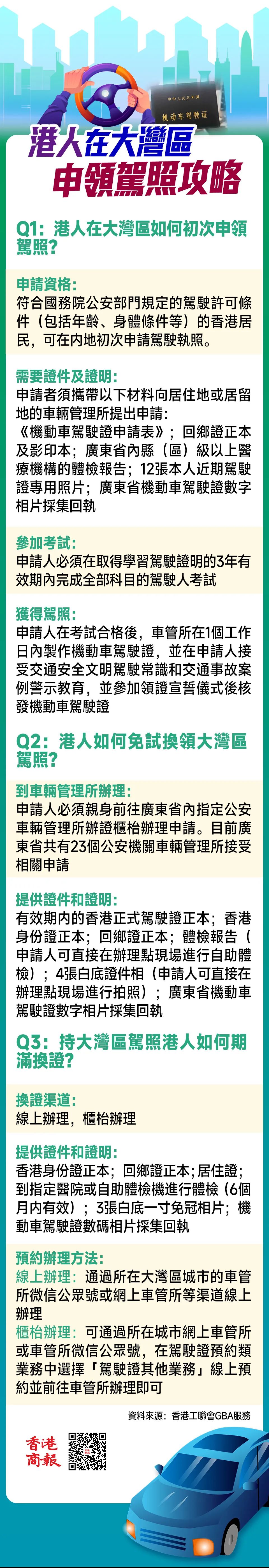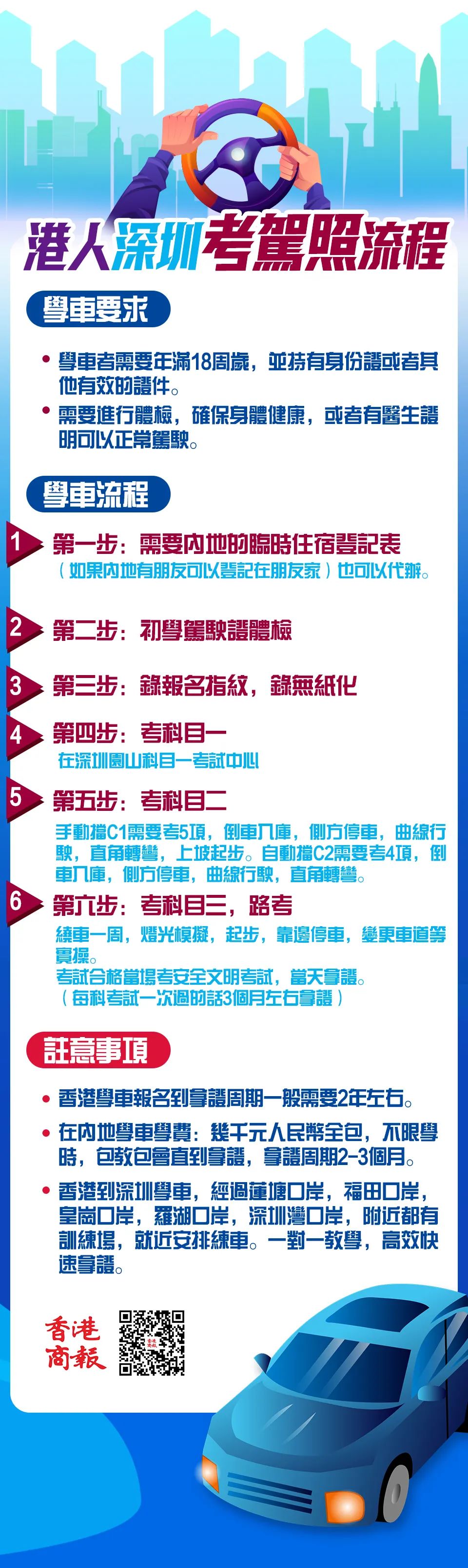 近日,有自媒體稱周末深圳考駕照成為港澳新趨勢。 自媒體文章稱,隨着粵港澳三地不斷完善的跨境往來設施,「一小時生活圈」的便利性日益凸顯。其中,引人注目的是「港漂」現象。香港擁有超過30萬名「港漂」,而這些人在「一小時生活圈」中的角色愈發顯著。特別是在學車需求上,這成為社會熱點。 在香港學車費用昂貴,於是「港漂」們將目光轉向了距離較近的深圳。兩地駕照可互換,以及考牌程序的相似性也讓在香港生活的「港漂」更願意前往深圳學車。 今天小編給大家整理了一份到內地學車及申領駕照的攻略,建議收藏! 01考駕照攻略 考內地車牌要符合甚麼條件? 考內地車牌基本條件跟香港大致一樣,不過會有色盲測試、身體檢查等。對一般人影響不大,但如身體有較特殊的情況例如曾經中風等,則可能需要內地醫院醫生證明及批准才能報考內地車牌。 報考車牌須符合以下身體條件↓ 考試合格後,成功獲取的駕駛執照可全國通用。 02學車費用省半 內地駕校報名費約5000港元,包含從練車到考試再到拿證的全部費用,並有5次免費補考機會。 對比起內地,香港無論是選擇駕駛學院或找私人師傅,費用均不算太吸引。 以香港駕駛學院為例,練車及考試費用要交12880港元,課程費用不包括考試租車費2100港元。若找私人師傅,可以按學習程度上課,費用每堂結算一次,學習能力高的學生可能10幾堂就能學好,通常價格約5000港元,但這並不包括各種費用,以及補考學費,逾2000港元。 由此看來,不少人想去深圳報名學車,還是因為學車費用太香了。 隨着今年7月1日「港車北上」政策的實施,未來將有更多港人開車到內地,港人如何在內地申領駕照?睇圖了解↓ 廣東省內的23個指定公安機關車輛管理所(車管所)↓ 想要申請免試換領內地駕照,申請人必須持有正式的駕駛執照,完成一年的暫准駕駛期,且需要符合年齡限制和通過身體檢查。 港人可換領車類對照表。香港運輸署官網截圖 駕照換領費用 1.體檢及拍照費用:55元人民幣。 2.註冊費:490元港幣。 文章来源于香港商报,如有侵权请联系删除。本文仅代表作者观点,不代表大湾网的观点立场。 |