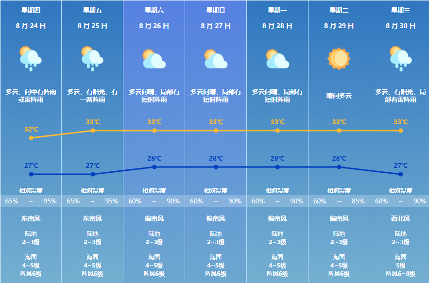 告别了上周的雷阵雨 最近几天开启了升温模式 最高气温一不留神就飙到了33°C+ 虽然偶尔会“洒洒水”“灭灭火” 但广东还是“烤鸡腿”模式 而且未来几天海面上的副高又西伸加强 重新控制华南区域 熟悉的晴热可能又要回来了 不过不用太担心 由于南风持续输送水汽 配合着较好的热力条件 明天间中有阵雨或雷阵雨 天气趋于炎热 体感可能会比较闷热 另外 菲律宾以东洋面的台风胚胎91W不断发展 由于缺少引导气流 它基本乖乖在原地打转 但作为“空窗期”后第一个杀出重围的选手 它的实力还是不容小觑的 之后它是否会对我市造成影响 还有很强的不确定性 后续我们将持续关注! 【珠海未来七天天气预报】 文章来源于珠海气象,如有侵权请联系删除。本文仅代表作者观点,不代表大湾网的观点立场。 |