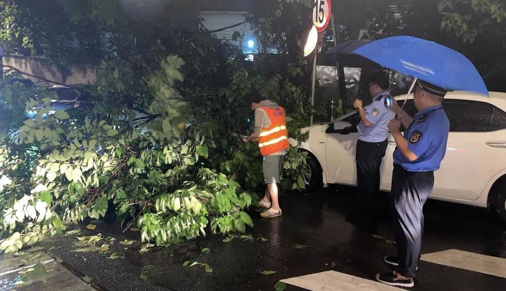 8月23日23时许,黄埔区发布雷雨大风黄色预警和部分镇街暴雨黄色预警。24日1时20分许,受暴雨大风影响,中山大道转蟹山路口10米左右处,有一棵大叶榕被大风刮倒,骑压在两台私家车上,导致该路段交通中断。