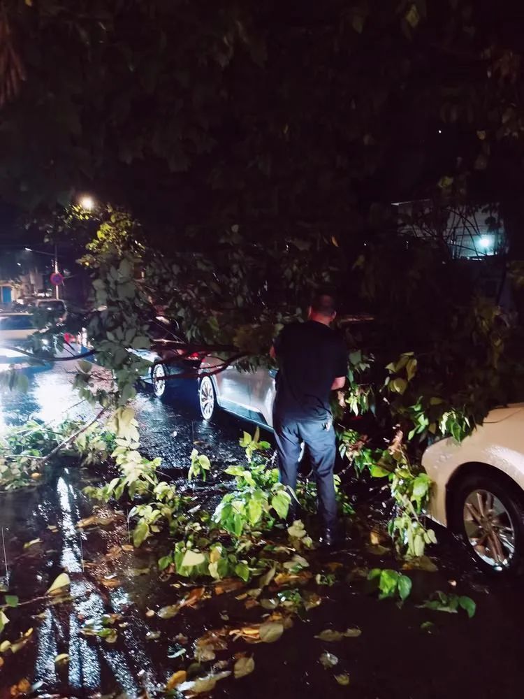 大湾区广州黄埔大风刮倒榕树砸中两台小车,幸无人伤亡