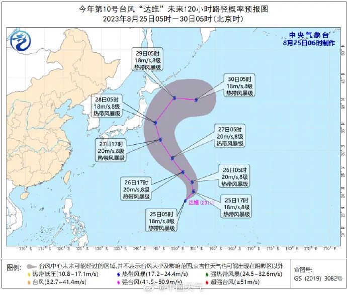 据@中国天气 消息 今年第10号台风“达维” 于25日05时在西北太平洋洋面上生成! 预计,“达维”将以每小时25-30公里的速度 向东北方向移动,强度变化不大