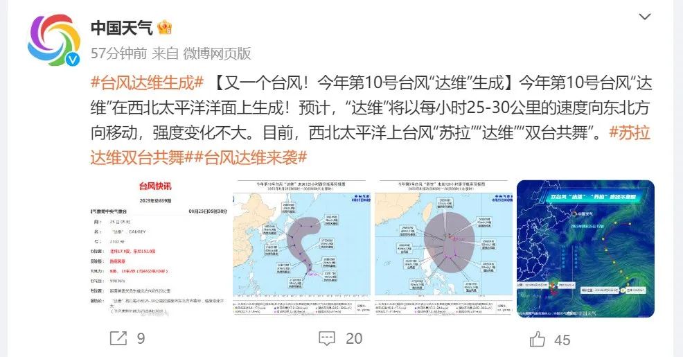 想要天气凉爽一些 可能多数小伙伴们会想到台风 目前,第9号台风“苏拉” 第10号台风“达维” 已经生成