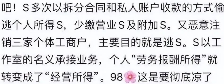 近日,网友爆料宋祖儿(原名:孙凡清)被前公司人员实名举报偷税漏税,引起网友热议,话题#宋祖儿#登上微博热搜第一。 天眼查app显示,宋祖儿(孙凡清)共关联4家企业,其中,由其个人独资的青岛柒鼎影视文化工作室、长兴洵美影视文化工作室、新沂涓涓影视文化工作室均已注销,目前存续状态仅剩上海泓泉影视文化有限公司1家。泓泉影视文化公司成立于2020年12月,注册资本100万人民币,法定代表人、执行董事、大股东为何旭军,宋祖儿担任监事并持股10%。年报信息显示,该公司参保人数为0。 目前宋祖儿参演的有四部待播剧,《无忧渡》《折腰》《艰难的制造》《阅读课》,如果举报属实,这些剧集也将会受到严重影响。截至发稿,宋祖儿工作室、宋祖儿官方微博对此事尚无回应。 文章来源于羊城晚报,如有侵权请联系删除。本文仅代表作者观点,不代表大湾网的观点立场。 |