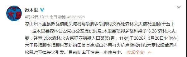 - 今年3月28日,四川省凉山州木里县乔瓦镇锄头湾村与项脚蒙古族乡项脚村交界处发生森林火灾,后蔓延成三条火线,其中以位于白碉乡的北线-东北线扑灭难度最大。经过四川省森林消防总队600余名指战员9个昼夜鏖战,整个火场终于得到有效封控。据四川省木里藏族自治县政府办公室通报,“3.28”森林火灾案原因系1名11岁男孩用打火机点燃树木熏洞内松鼠时不慎引发。