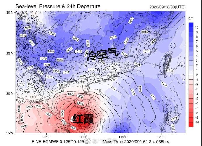 11号台风“红霞”即将登陆 9月16日凌晨2点,第11号台风“红霞”在南海东部生成。从热带低压成长到台风,“红霞”用时同样很短,但它也没有大家常见圆圈转转转的形状,结构欠佳。只是体型庞大,对流强烈,张牙舞爪,90后的网友看到下面这图,有没有想起咱们小时候做的广播体操“雏鹰起飞”▼ 看这个外表,显然“红霞”又是个吨位重的,庞大的云系几乎覆盖了整个南海中南部海域。然而,看人不能只看外表,看台风也如此。深入了解后,小编发现,大家千万不能小看“红霞”。▼ 有粉丝要说,吨位大有啥好怕的,指不定是虚胖。要是这么想,那你还真错了!“红霞”有三大“杀手锏”: 1 “稳重” 和其他台风喜欢东拐西拐不一样的是,“红霞”又是个只走T台cat walk的台风。沿着带状副热带高压南侧稳稳一路向西北。 2 “野心大” 从热带低压生成,到后来成了11号台风“红霞”,风力从七级连蹦三级,到了十级。而在高海温和充足的西南季风水汽卷入帮助下,“红霞”更加strong。 3 “心机重” 这一点,要站在珠海的角度来分析。虽然“红霞”离咱们比较远,但它居然call友,使上了“隔山打牛”这一招。何谓“隔山打牛”?小编先欠大伙一个答案。 既然“红霞”是个威猛先生,那它又会在哪儿登陆呢?据中央气象台最新消息预测,目前,“红霞”的中心位于南海中西部海面上,中心附近最大风力有10级,预计将以每小时25—30公里左右的速度向偏西方向移动,并将于今天中午前后在越南中部的广南省到广治省一带沿海登陆。▼ 尽管“红霞”与我国无缘,但因为它“大只佬”的特性,依然会让我们浅尝它的威力。这就是小编前面欠大伙“隔山打牛”的答案。▼ 先来看“隔山打牛”第一回合——降雨影响。 今天冷空气南下后,与暖湿气流在华南上空交汇,容易造成局部强降水。再加上“红霞”派出的外围东南风和南下的冷空气battle,更容易激发强对流天气。晚上,还是带上隔音耳塞睡个好觉吧!▼